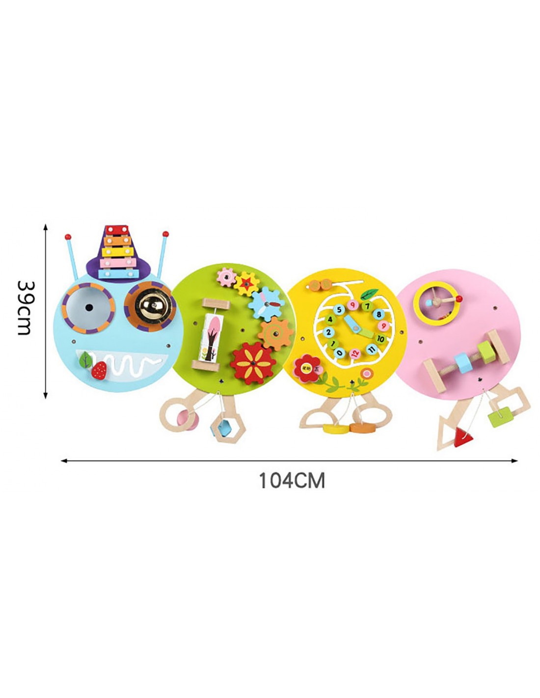 Ta duża drewniana tablica manipulacyjna ma wymiary 104 cm x 39 cm, co oznacza, że zapewnia duże pole do ekscytującej zabawy. Idealna do przedszkoli, restauracji, placów zabaw i miejsc użyteczności publicznej, ta tablica manipulacyjna jest zabawką wielofunkcyjną, która zapewnia rozwój dziecka na wielu płaszczyznach.