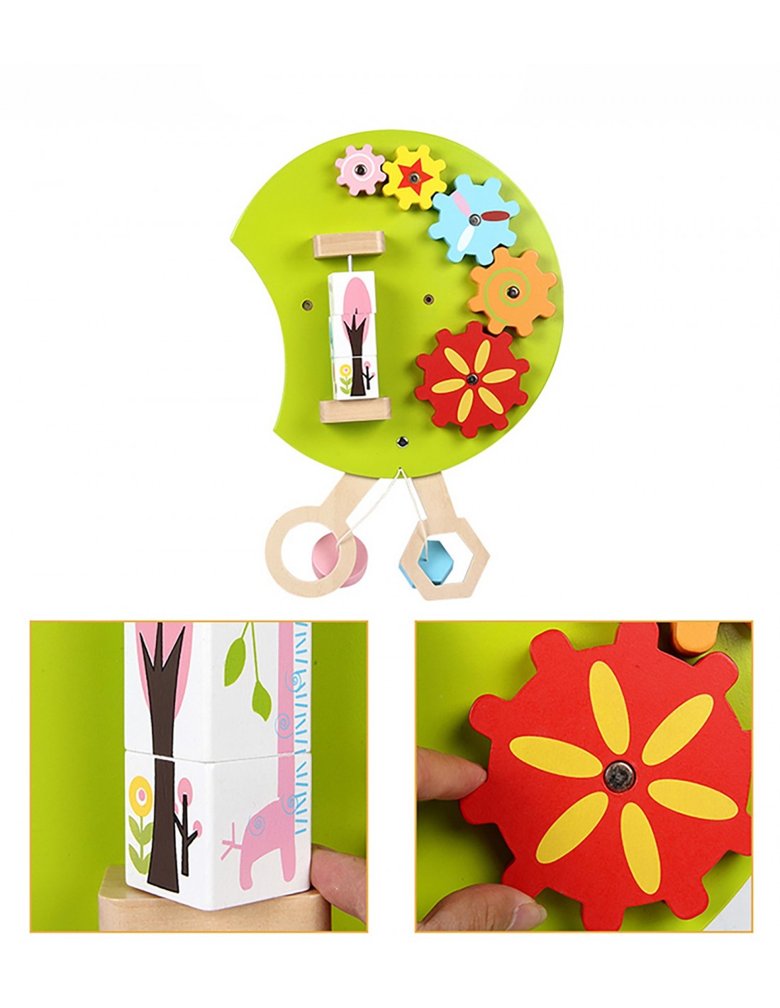 Ta duża drewniana tablica oferuje kilka rodzajów aktywności:
