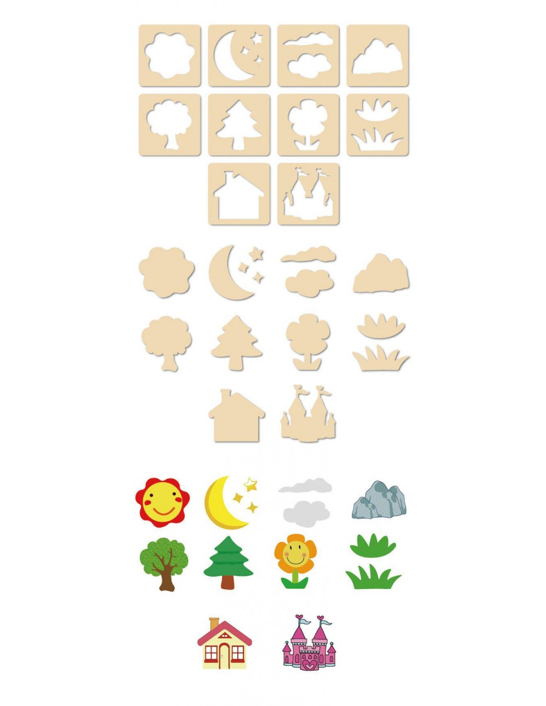 - drewniany wzory/szablony do rysowania - 56 szt.