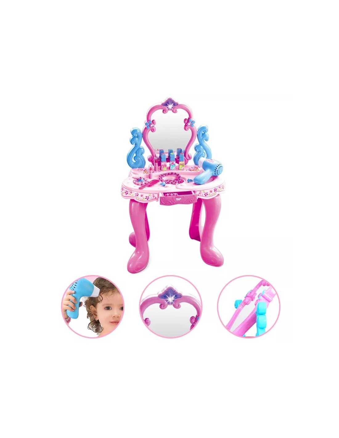 TOALETKA RÓŻOWA DLA DZIEWCZYNKI Z DŹWIĘKIEM I ŚWIATŁAMI oraz suszarką na baterie
