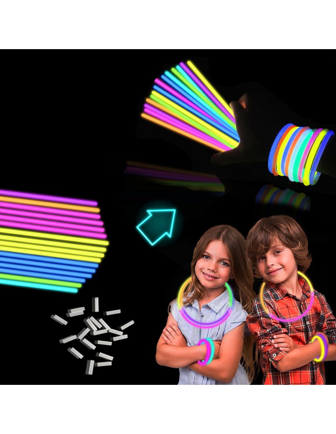 ⭐BRANSOLETKI PATYCZKI OPASKI FLUORESTENCYJNE 100 szt + ŁĄCZNIKI+ PUDEŁKO