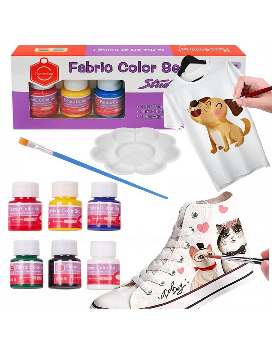 ⭐ZESTAW FARB DO TKANIN FARBY DO MALOWANIA UBRAŃ ODZIEŻY BUTÓW BARWNIK 6szt