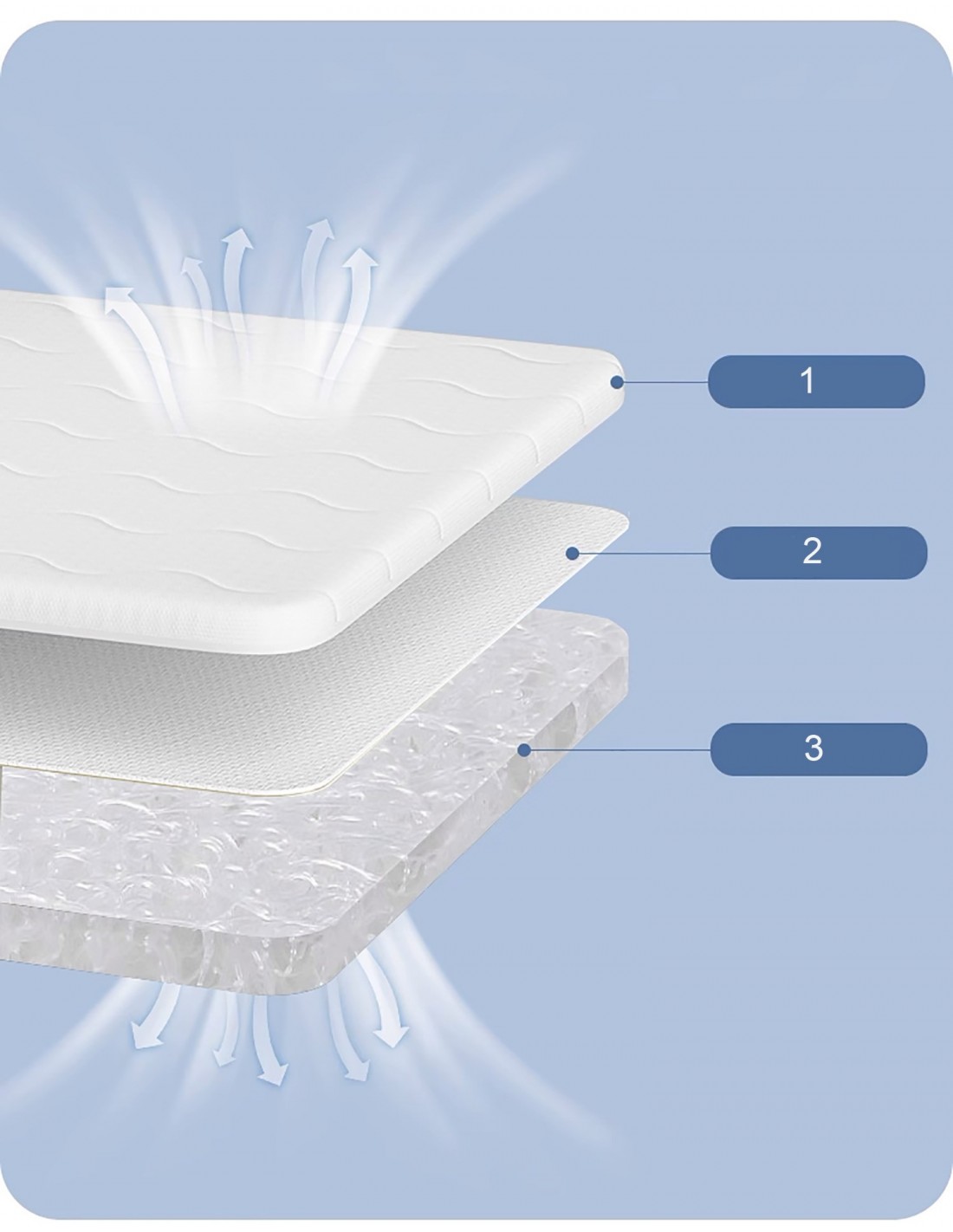 - Dzięki trójwymiarowej w pełni otwartej struktury materaca ( za sprawą wykorzystania specjalnej technologi produkcji z włókna polietylenowego )