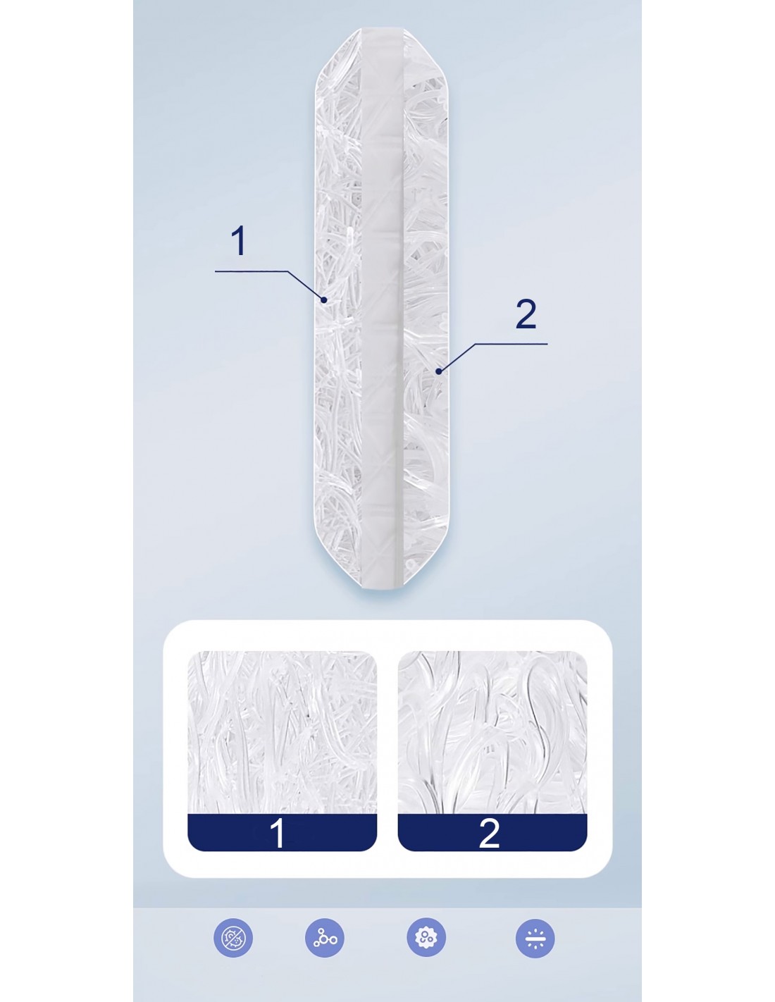 - Antybakteryjna struktura materaca z włókna poletylenowego zapobiega rozwojowi roztoczy