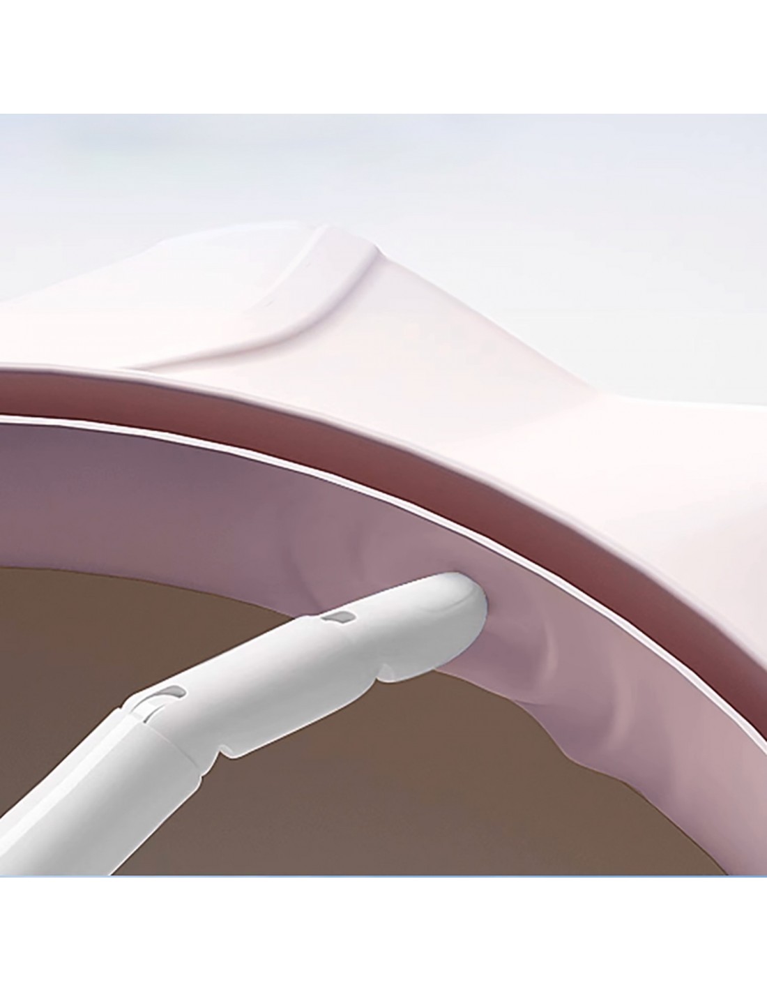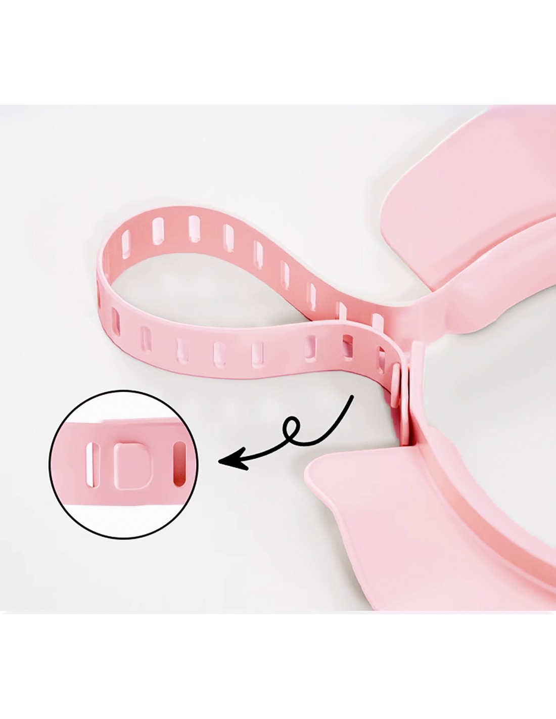 Dzięki specjalnie zaprojektowanej opatnetowanej konstrukcji, połączeniu dwóch materiałów ( sztywny daszek oraz miekki silikon ) rondo zabezpieczy oczy, uszy i twarz Twojej pociechy przed dopływem wody i szamponu. Delikatne, różowe wykończenie dodaje uroku i elegancji naszemu produktowi.