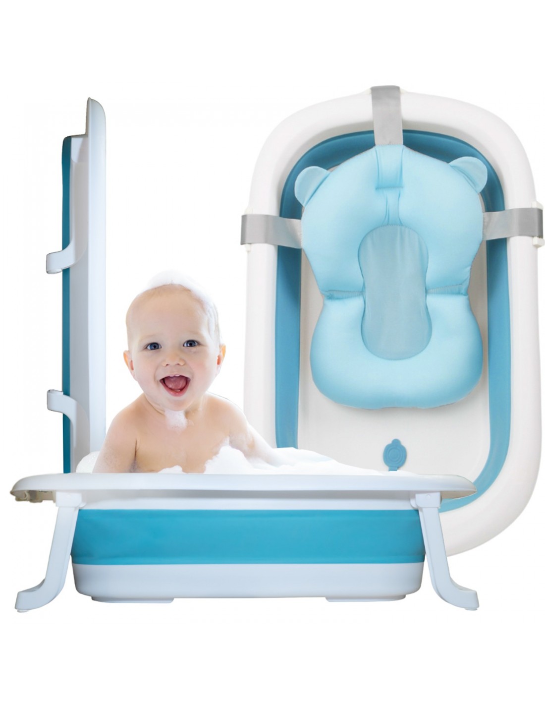 ⭐DUŻA WANIENKA DLA DZIECI SKŁADANA NICEKIDS SILIKONOWA NIEBIESKA Z PODUSZKĄ
