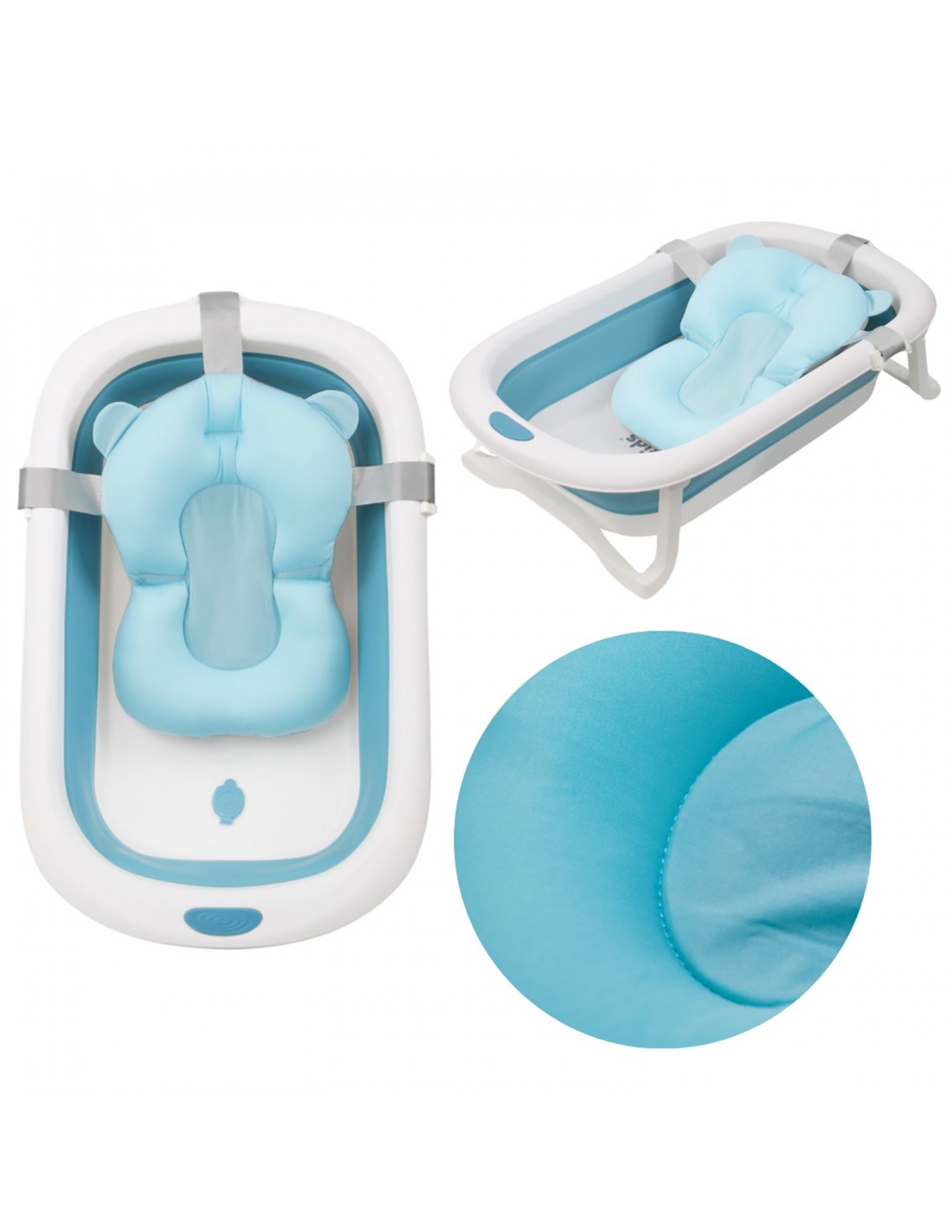 - W zesatwie zanajduje się poduszka sensoryczna ze spacjalnymi uchytwami, dzięki którym łatwo można ją zamontować do wanienki.