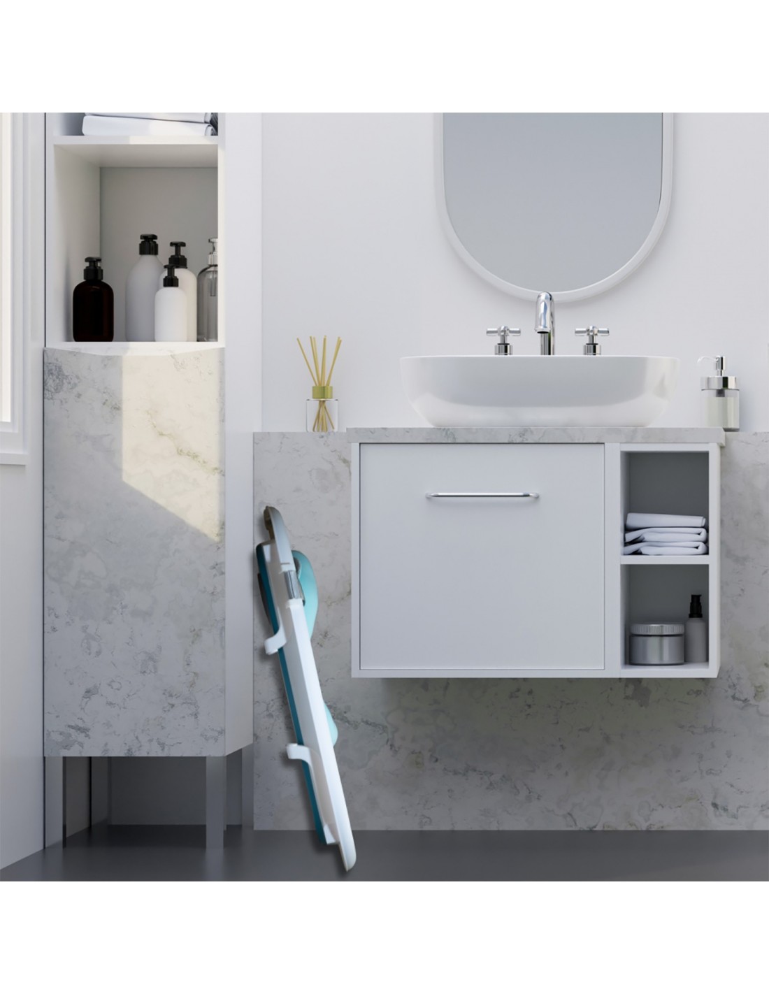 Wanienka, dzięki mocnym stabilnym rozkładanym nogom nie złoży się w czasie kąpieli, a antypoślizgowe nóżki zawsze zapewnią stabilność na śliskiej nawierzchni.