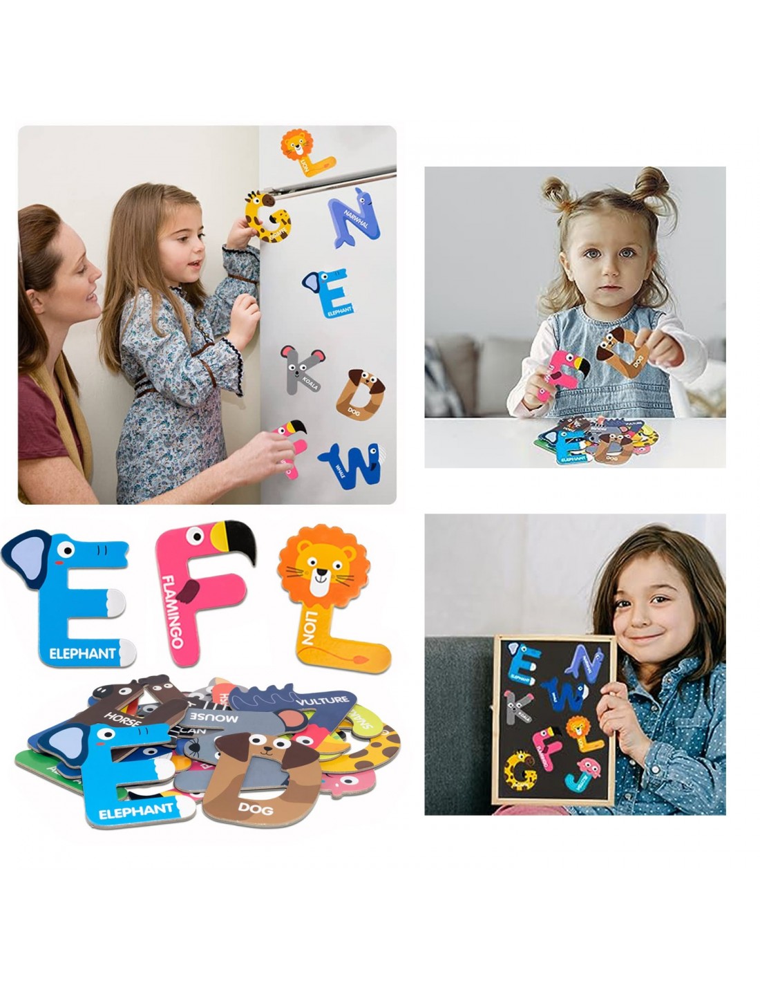 ⭐ DUŻE MAGNESY NA LODÓWKĘ ALFABET ZWIERZĘTA 26 SZT.