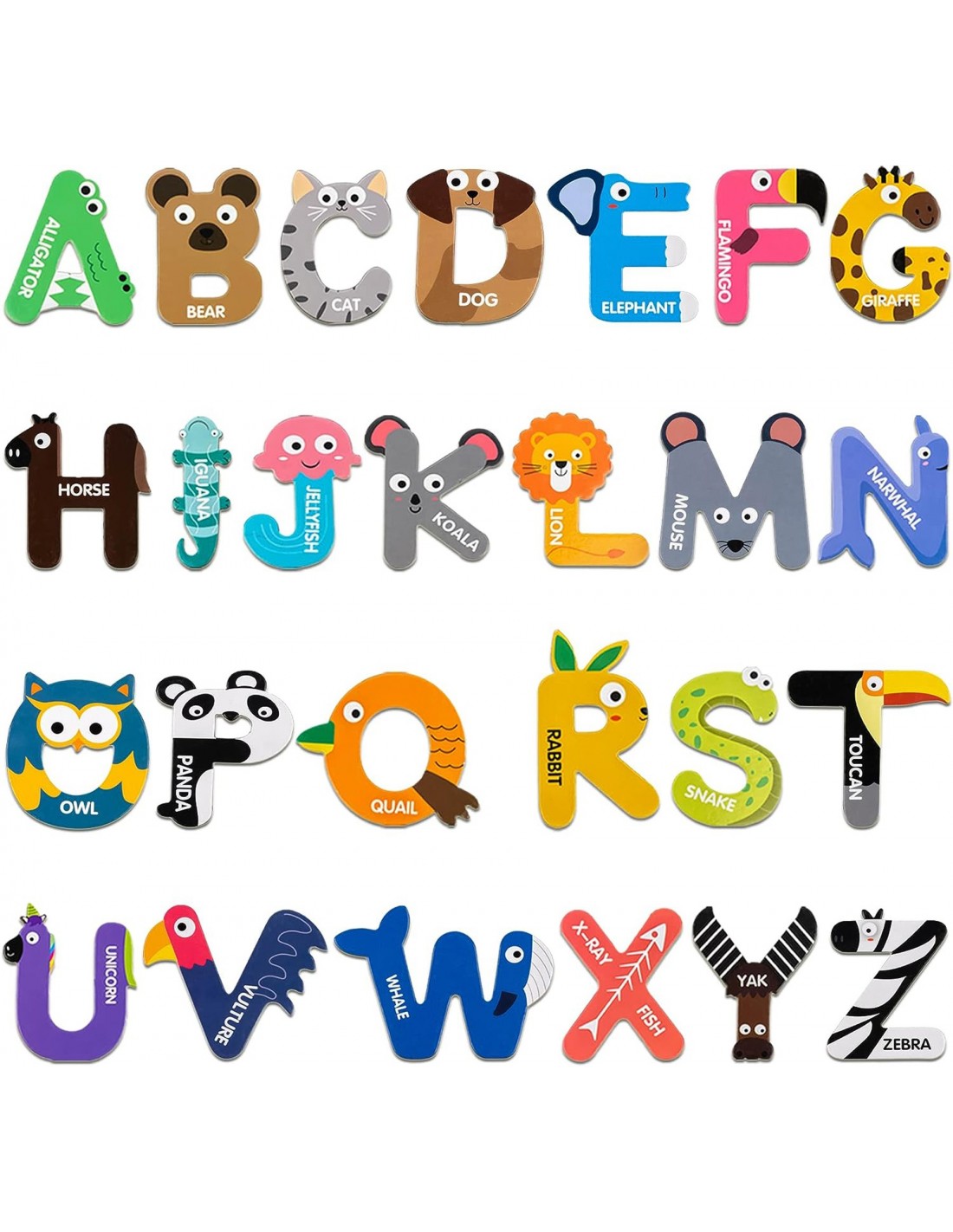 ✅ Ten zestaw magnesów alfabet ma różne wzory zwierząt.