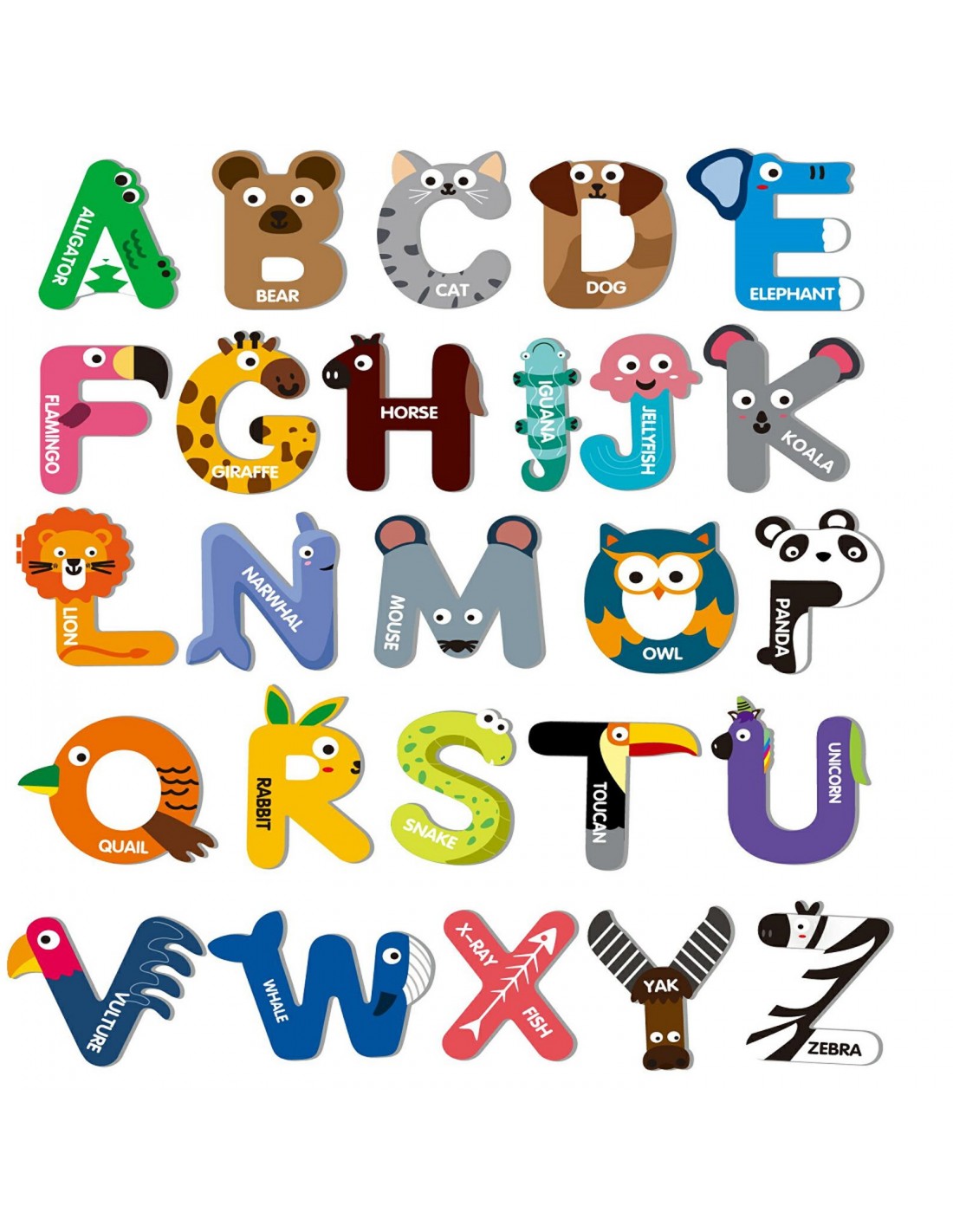 DUŻE MAGNESY NA LODÓWKĘ ALFABET ZWIERZĘTA 26 SZT.