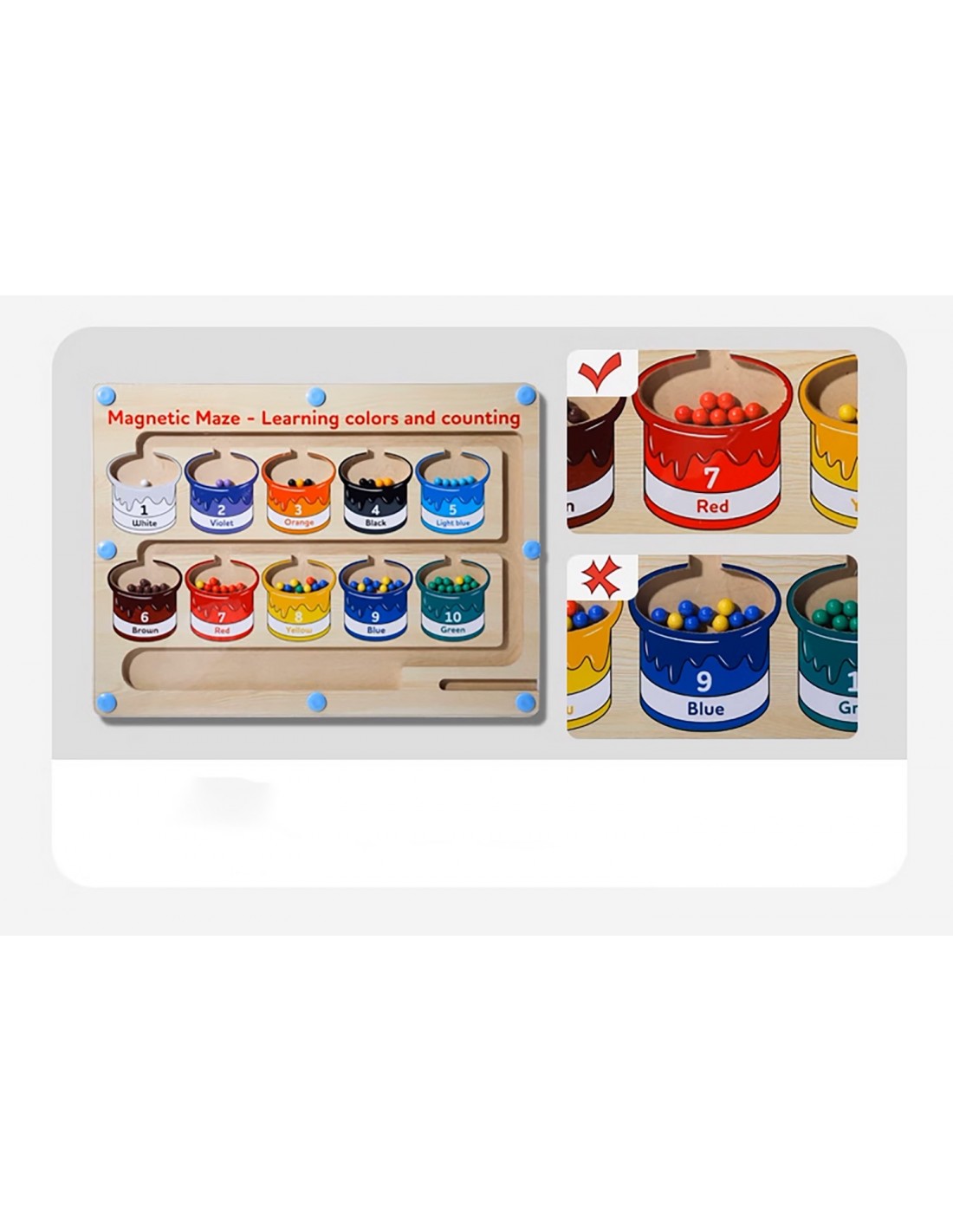 - Zawartość opakowania: Labirynt Magnetyczny Montessori, Kolorowe kuleczki, długopis magentyczny