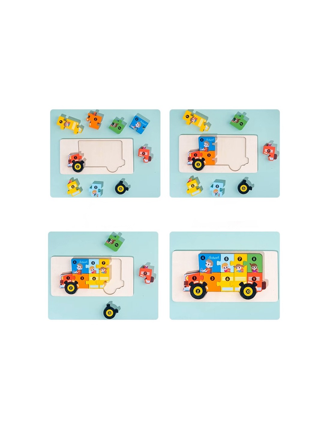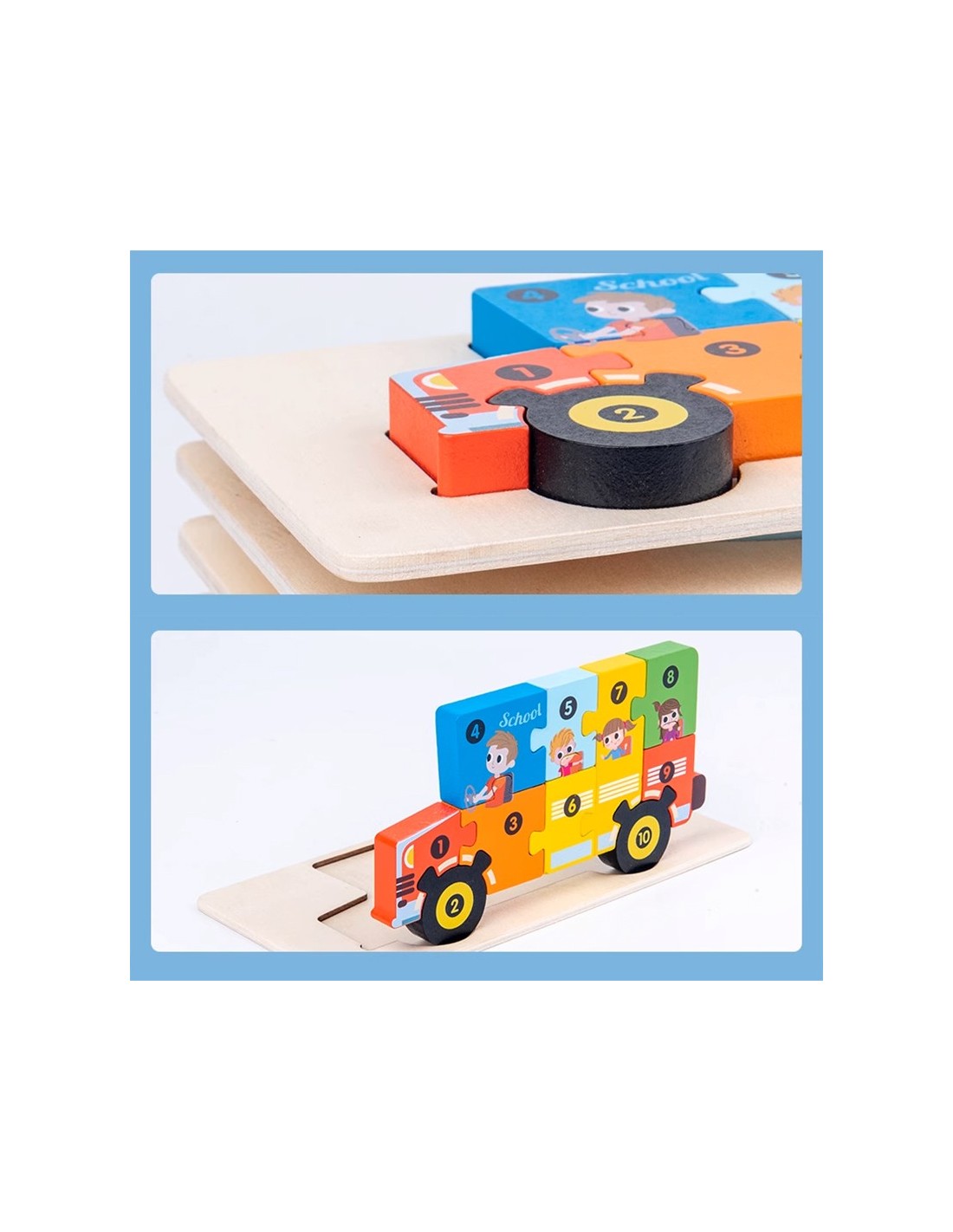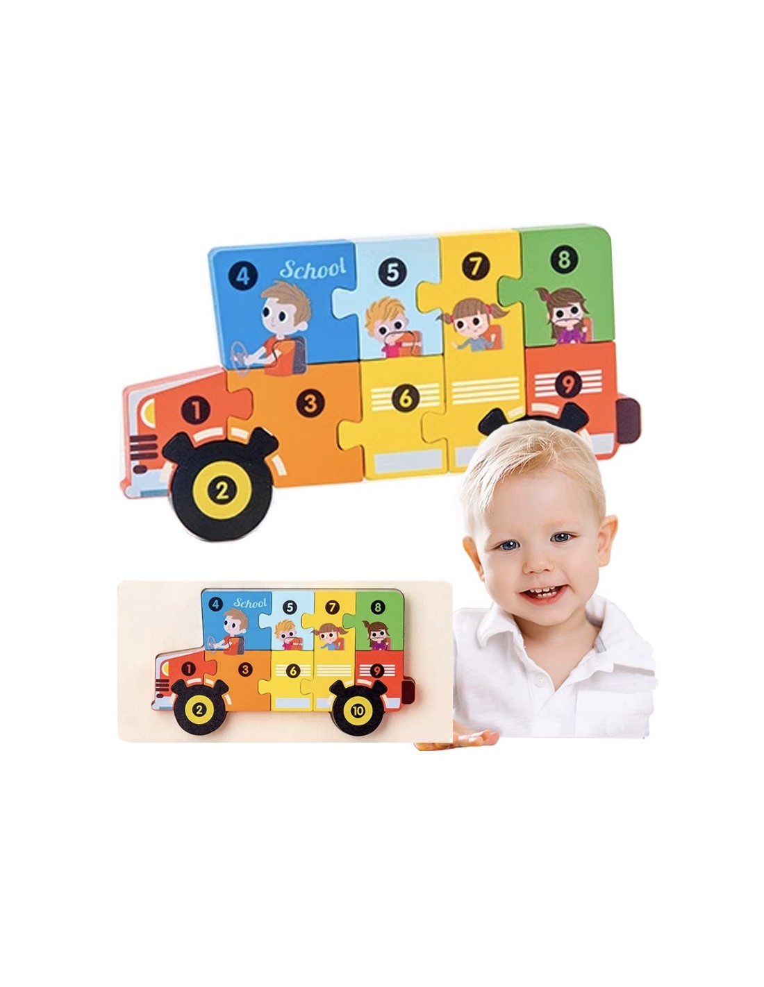 ⭐DREWNIANA UKŁADANKA KLOCKI DOPASUJ KSZTAŁTY DLA DZIECKA AUTOBUS