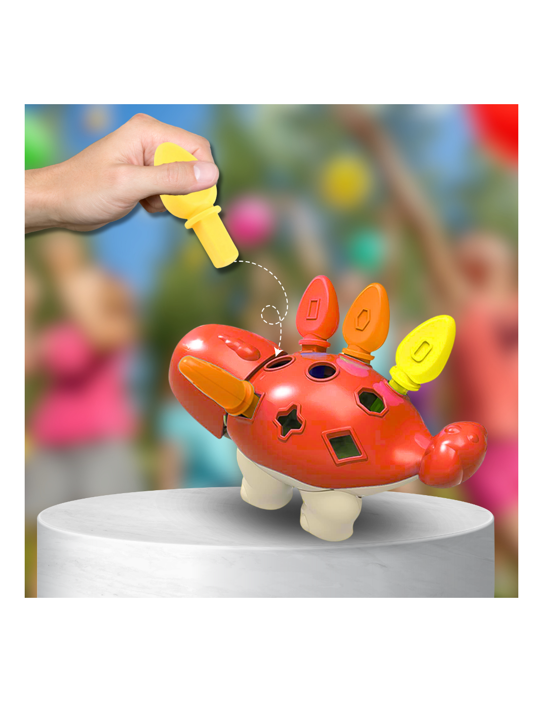 Rozpoznawanie kolorów i kształtów: różne kolory kolców i kształtów z tyłu pomagają dzieciom rozwijać umiejętności rozpoznawania kolorów i sortowania.