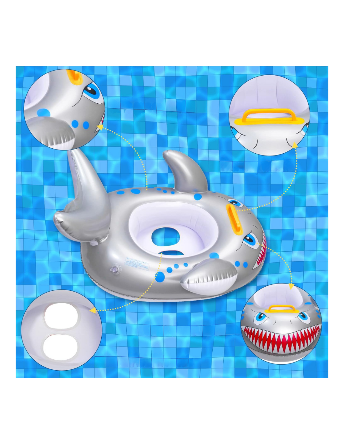 ⭐KOŁO DO PŁYWANIA DLA DZIECKA Z SIEDZISKIEM I UCHYTEM DMUCHANE REKIN SREBRNY BASEN
