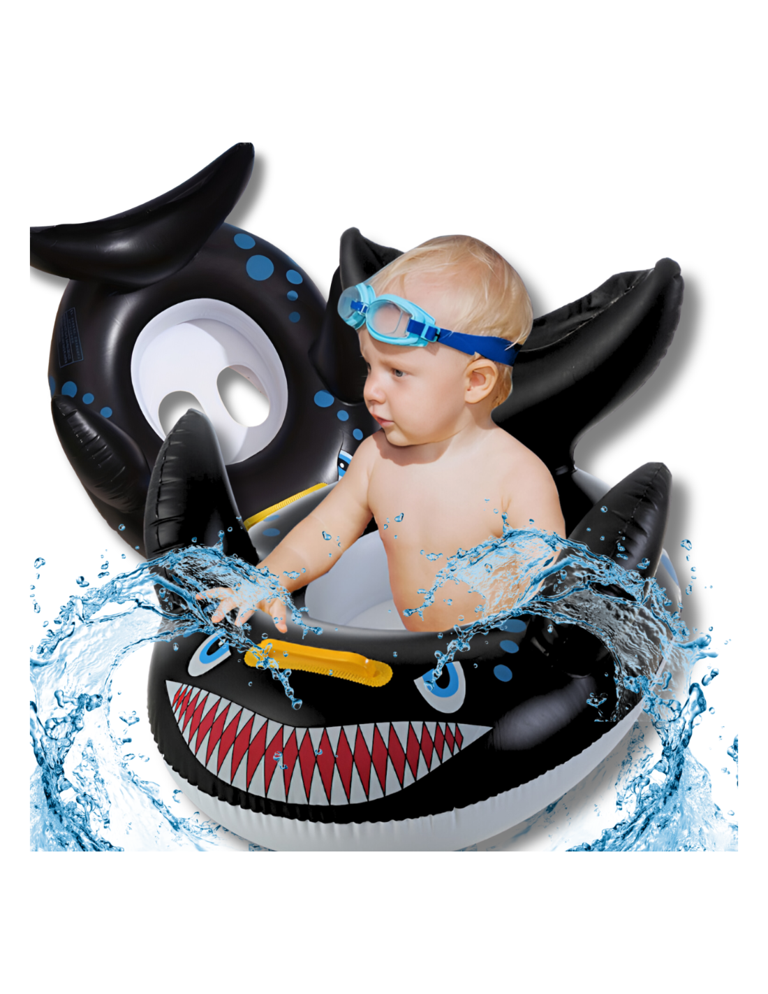 ⭐KOŁO DO PŁYWANIA DLA DZIECKA Z SIEDZISKIEM I UCHYTEM DMUCHANE REKIN CZARNY BASEN