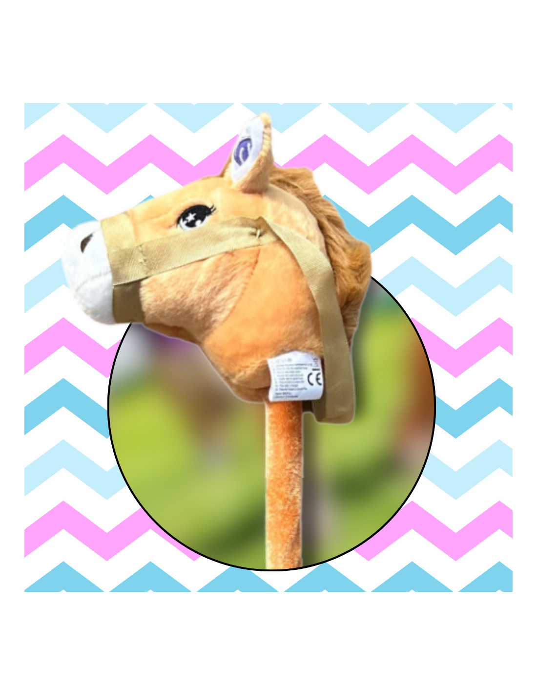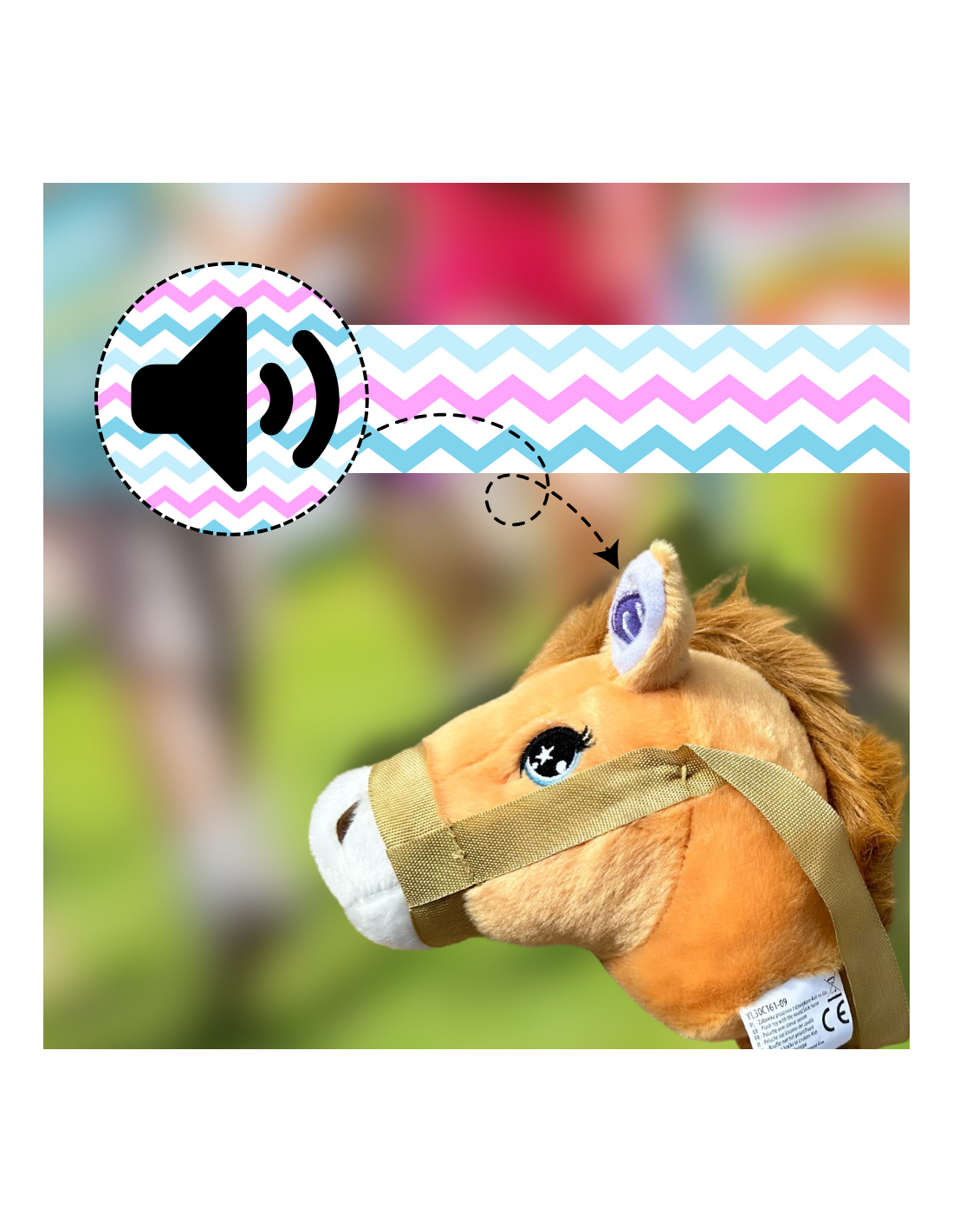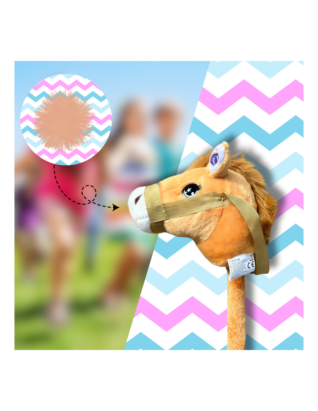 ⭐GŁOWA KONIA PLUSZOWA NA KIJU HOBBY HORSE JASNY BRĄZOWY Z DŹWIĘKIEM