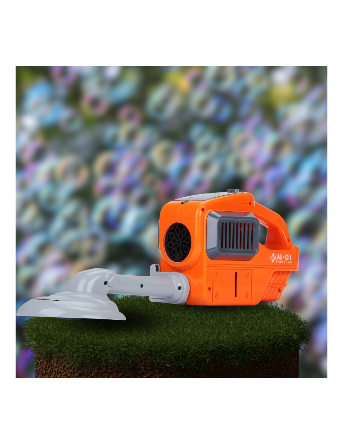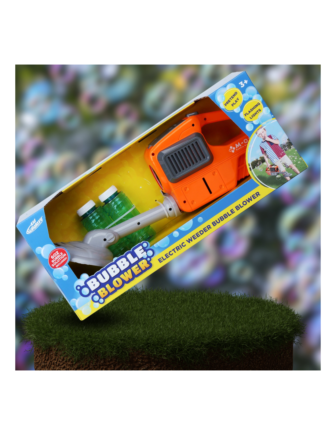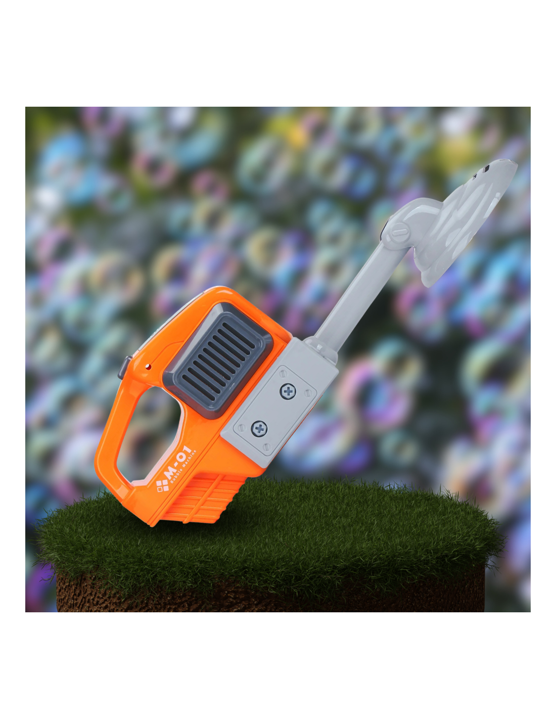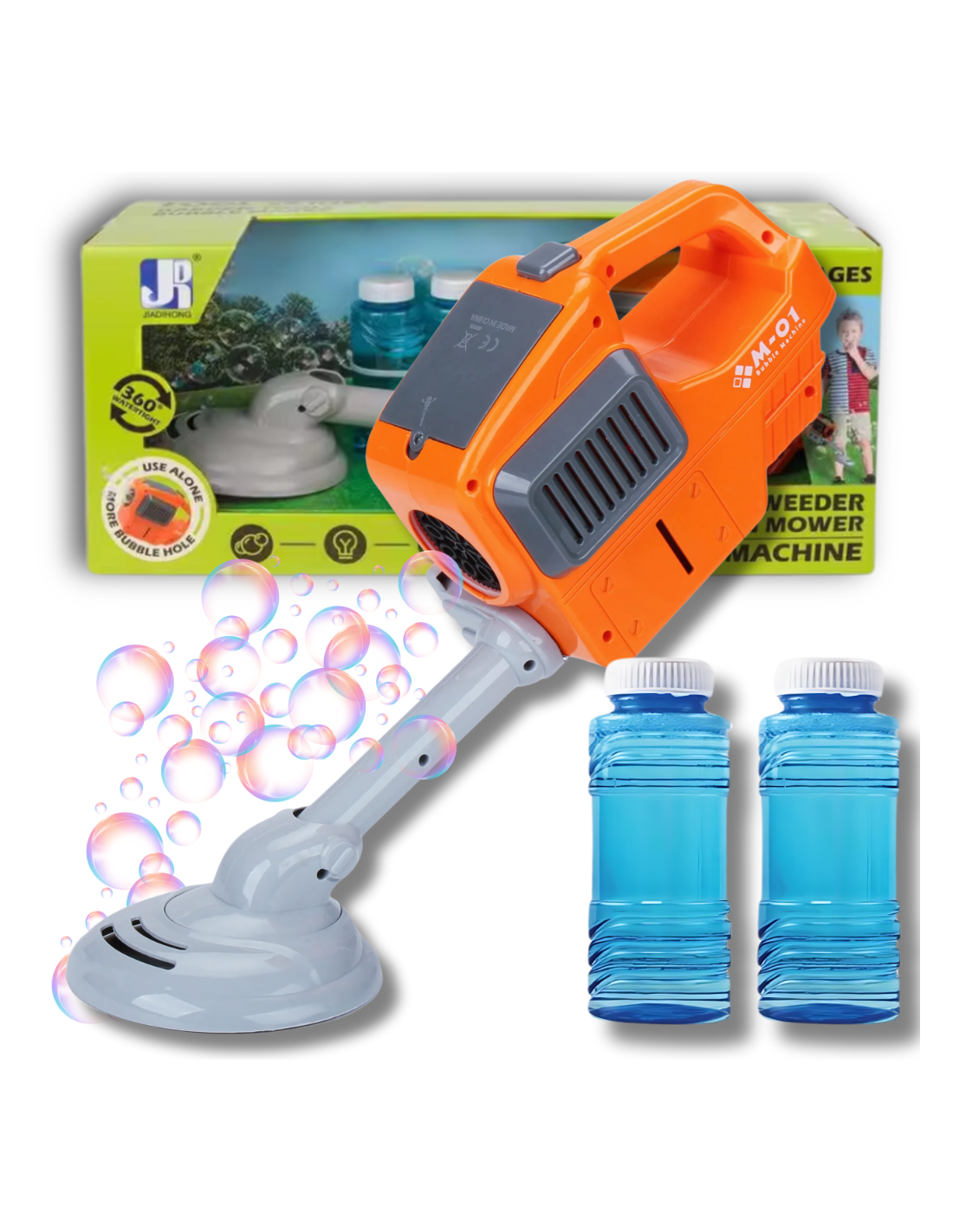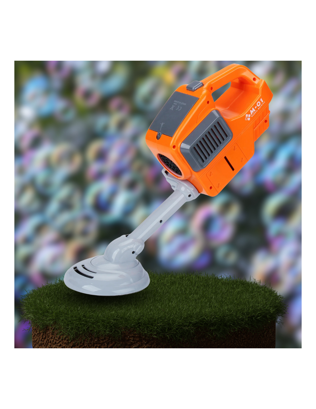 Kosiarka z wbudowanym generatorem baniek mydlanych. Bańki z przedniego wirnika podkaszarki, - podczas koszenia wypuszcza mnóstwo pięknych baniek co daje ogromną frajdę każdemu maluchowi. Płyn uzupełnia się bardzo prosto, wystarczy nalać do zbiornika.