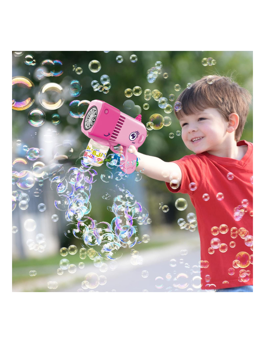 Rozbudź wyobraźnię swojego dziecka i wprowadź je w magiczny świat baniek mydlanych z naszym niesamowitym pistoletem do baniek mydlanych w kształcie uroczego JEDNOROŻCA! Pistolet do Baniek Mydlanych aparat do baniek w różowym kolorze to idealna zabawka dla dzieci, która dostarczy im mnóstwo radości i niezapomnianych chwil zabawy.