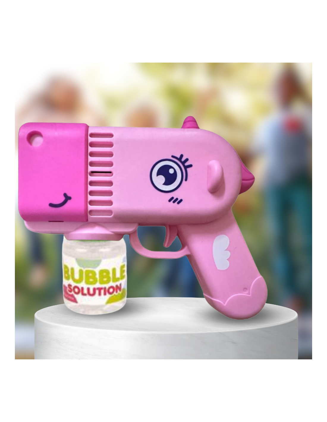 PISTOLET NA BAŃKI MYDLANE Aparat DO TWORZENIA BANIEK MYDLANYCH + PŁYN RÓŻOWY JEDNOROŻEC