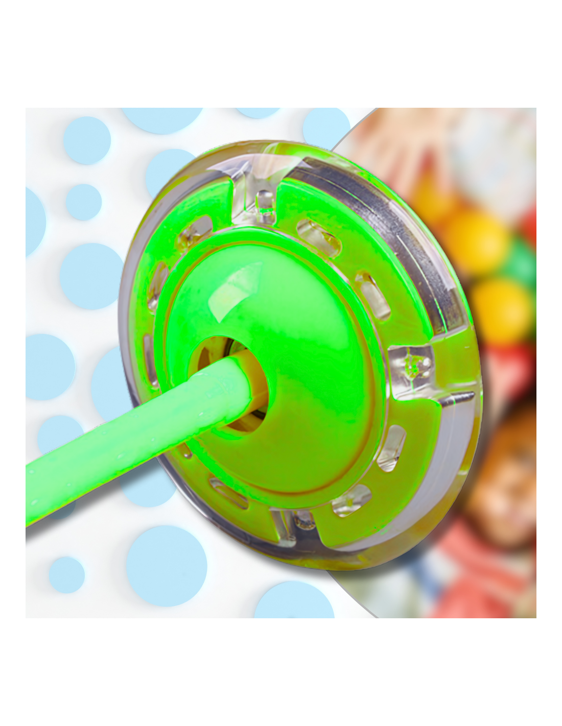 Zabawka zakładana jest na nogę przez odpinaną obręcz, która otoczona jest miękkim ochraniaczem, więc podczas użytkowania nic nie sprawia dyskomfortu i nie trzeba się martwić o niepotrzebne otarcia. Na końcu elastycznej, gumowej liny znajduje się cięższy, kauczukowy element, który dzięki prawom fizyki, umożliwia prawidłowe obracanie zabawką. Na tym elemencie znajdują się również osłonięte diody LED, które dodają niecodziennego uroku i przyciągają wzrok tworząc kolorową, świetlną otoczkę wokół użytkownika. Im szybciej skakanka się kręci - tym mocniej świecą diody.