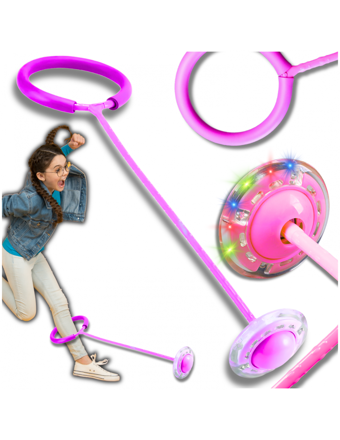 ⭐HULA HOP NA NOGĘ SKIPPER SKAKANKA MIĘKKA GUMOWA Z DIODAMI LED RÓŻOWE