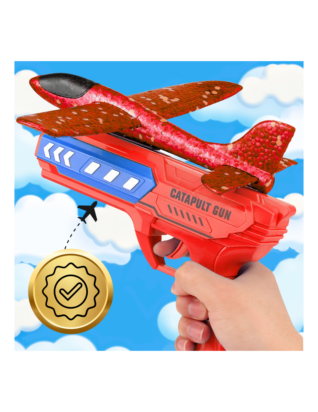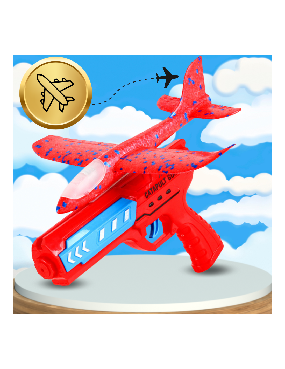 - Spektakularne loty z wyrzutnią – Samolot może być wypuszczany w przestworza za pomocą pistoletu – wyrzutni, załączonej w zestawie. Wystarczy umieścić samolot w odpowiednim miejscu, naciągnąć i strzelić! Dzięki temu poleci zdecydowanie dalej i bardziej spektakularnie niż puszczany z ręki. Pistolet wykonany z mocnego tworzywa sztucznego. ??