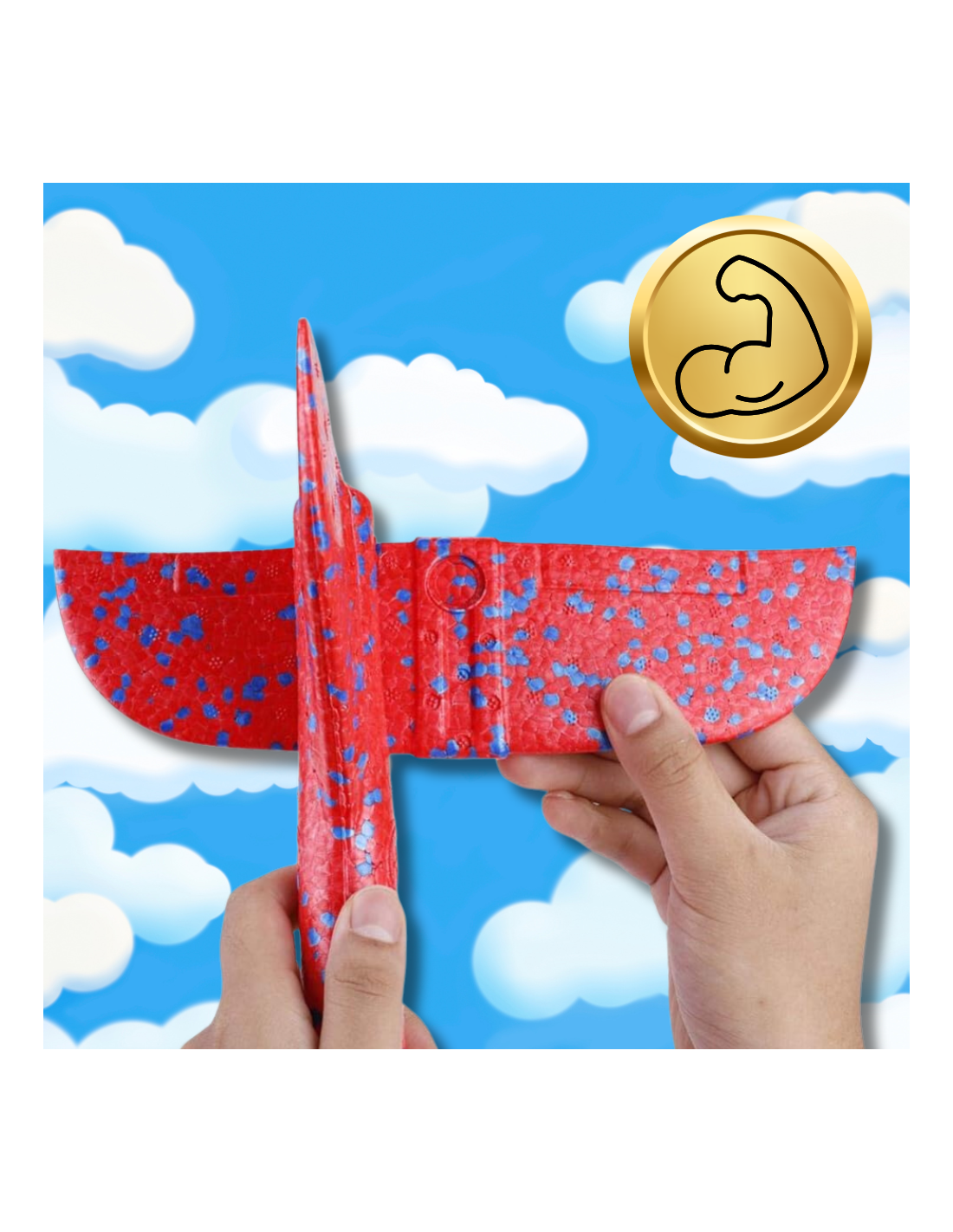 - Regulowane zdolności szybowania – Samolot ma wycięte w tyle dwa otwory, które w zależności od ułożenia skrzydła, decydują o prostej lub zakrzywionej zdolności szybowania. To pozwala dzieciom na eksperymentowanie i naukę poprzez zabawę. ?️