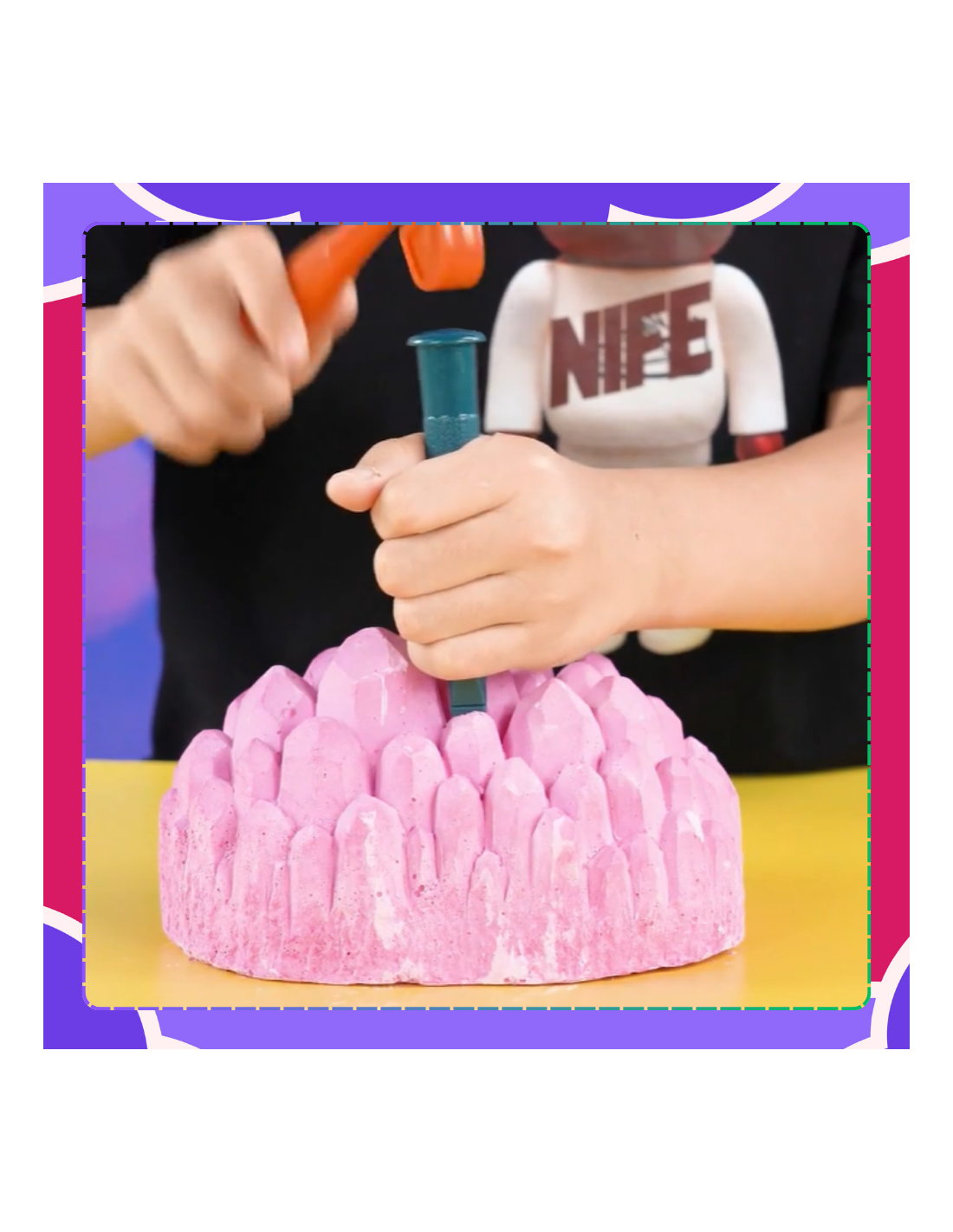 Duży blok, w którym ukryte są diamenty i inne kamienie, czeka na odkrywcę. Dzieci muszą użyć narzędzi, aby wydobyć swoje skarby.