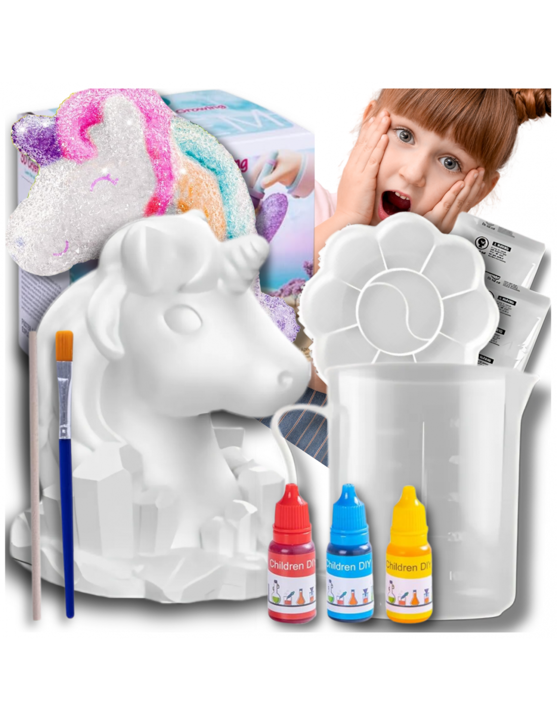 HODOWLA KRYSZTAŁÓW KRYSZTAŁY ZESTAW EDUKACYJNY JEDNOROŻEC DO MALOWANIA DIY
