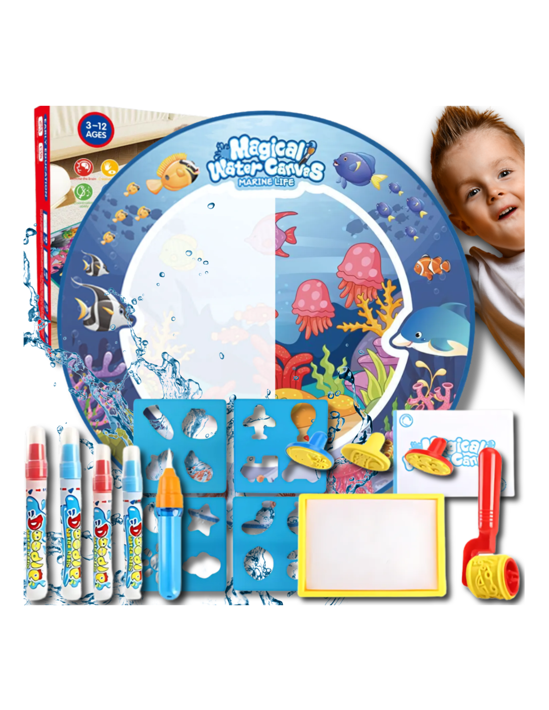 ⭐️Odkryj niezwykłą zabawę z naszą okrągłą matą wodną inspirowaną podwodnym światem! Ten interaktywny zestaw pozwala dzieciom tworzyć nieskończone rysunki i wzory przy użyciu wody, zapewniając mnóstwo frajdy bez bałaganu. Idealny do rozwijania wyobraźni i umiejętności artystycznych!