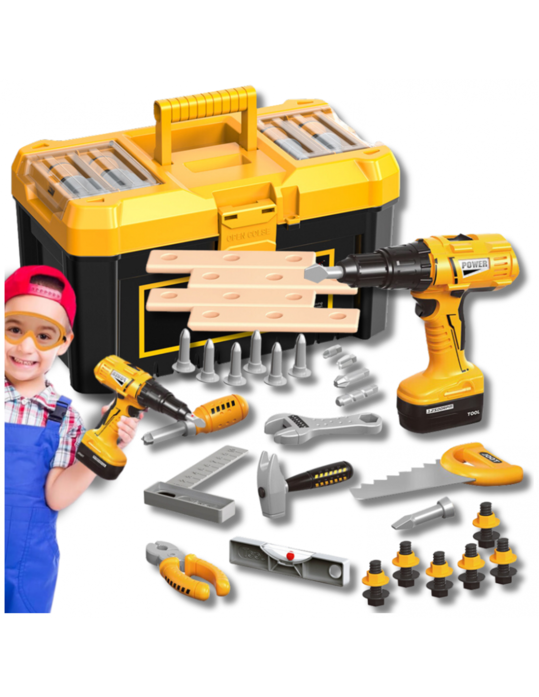 ☑️Rozwiń umiejętności manualne i kreatywność swojego dziecka dzięki zestawowi narzędzi dla dzieci! Ten kompletny zestaw narzędzi zawiera wszystko, czego potrzebuje mały majsterkowicz, aby bawić się w naprawianie, budowanie i konstruowanie.