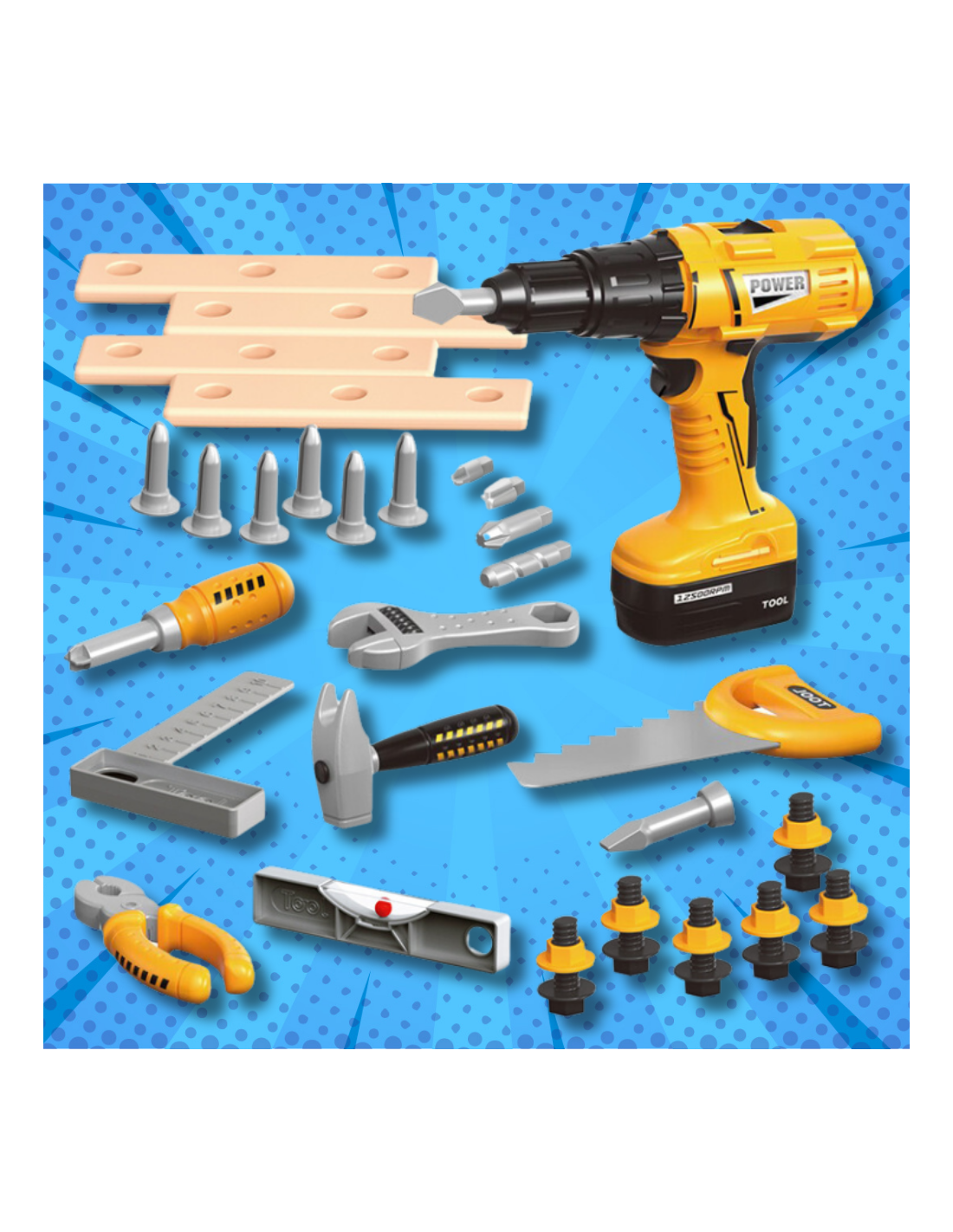✔️ Rozwój umiejętności manualnych – Zestaw narzędzi rozwija koordynację ruchową, precyzję oraz wyobraźnię przestrzenną dziecka, ucząc podstawowych umiejętności majsterkowania.