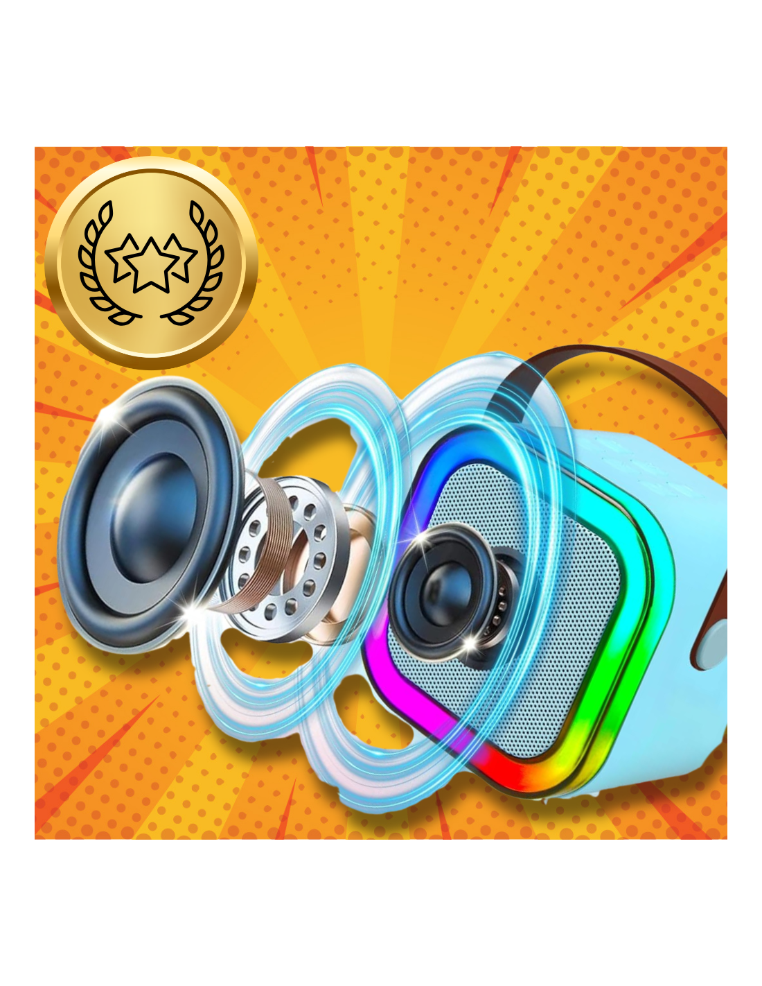 ⭐️Rozkręć każdą imprezę z naszym głośnikiem karaoke, idealnym zarówno dla dzieci, jak i dorosłych! Dzięki kompaktowym rozmiarom, kolorowemu podświetleniu oraz funkcji Bluetooth, ten głośnik pozwoli każdemu cieszyć się śpiewaniem ulubionych hitów w każdej chwili i miejscu.