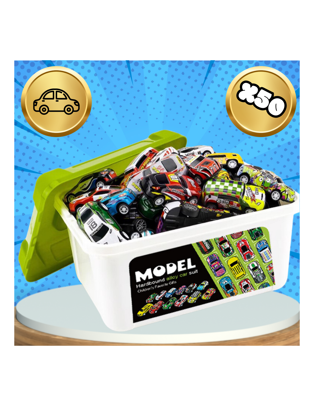 W zestawie znajduje się aż 50 samochodzików w różnych kolorach i modelach, które z pewnością zachwycą każde dziecko.