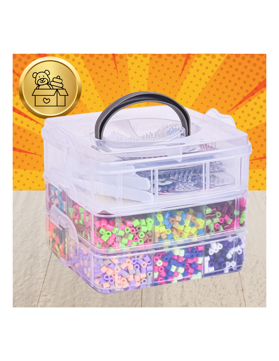 ➕Skrzyneczka – Praktyczna skrzyneczka, która pozwoli na łatwe przechowywanie i organizację koralików oraz akcesoriów, zapewniając porządek w miejscu zabawy.