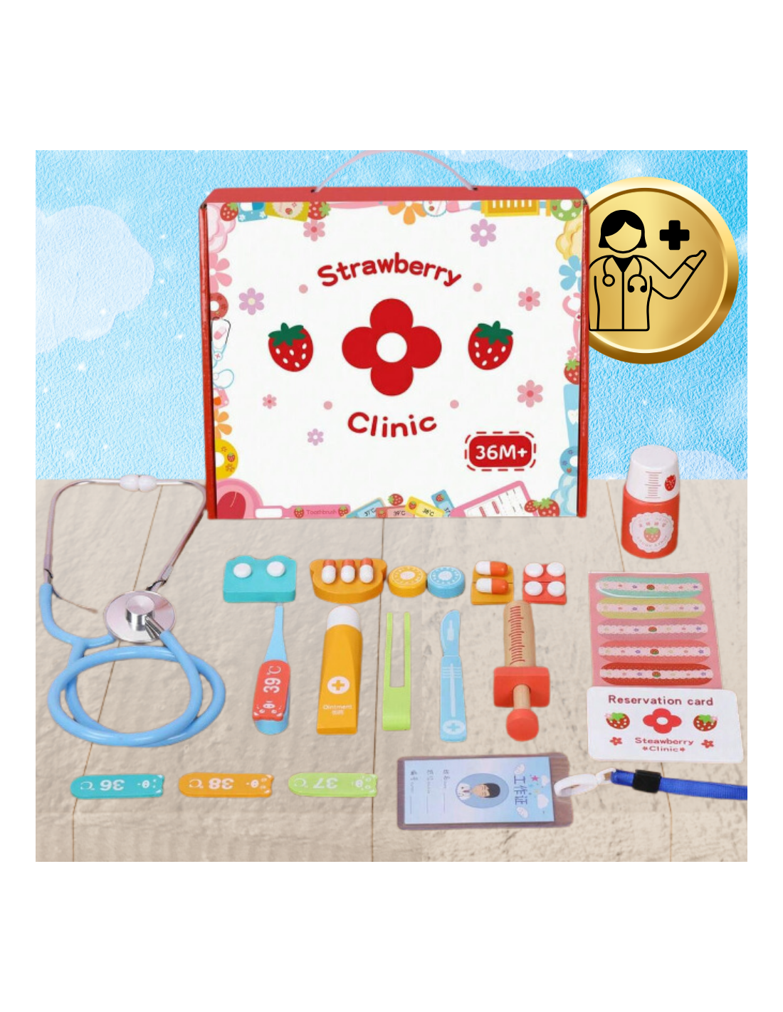 ⭐DOKTOR DREWNIANY ZESTAW LEKARSKI LEKARZ STETOSKOP WALIZKA DLA DZIECI