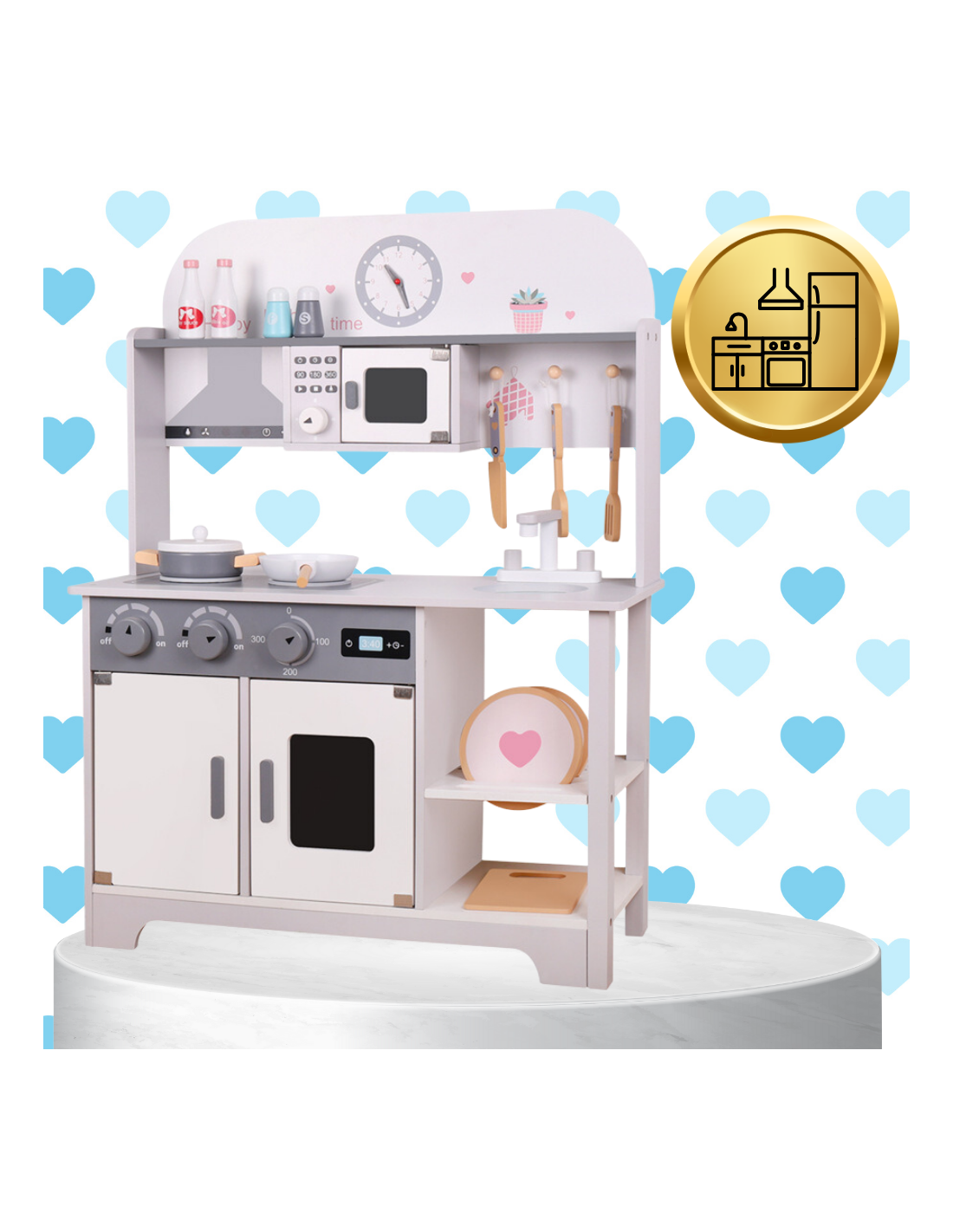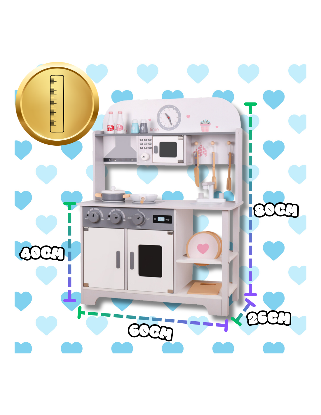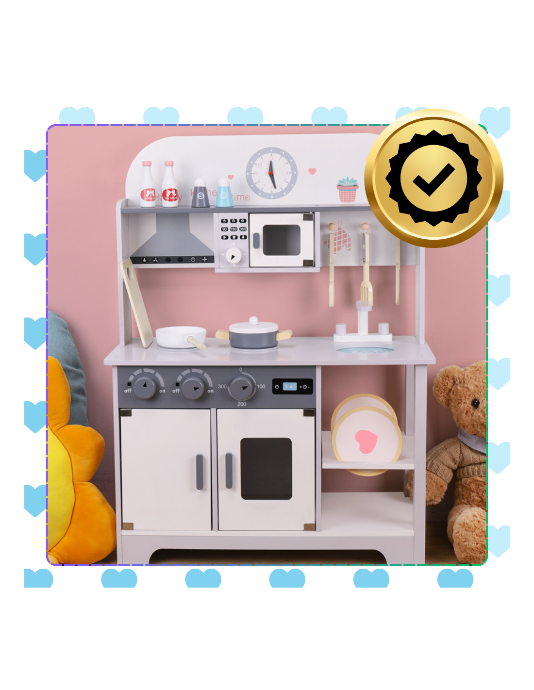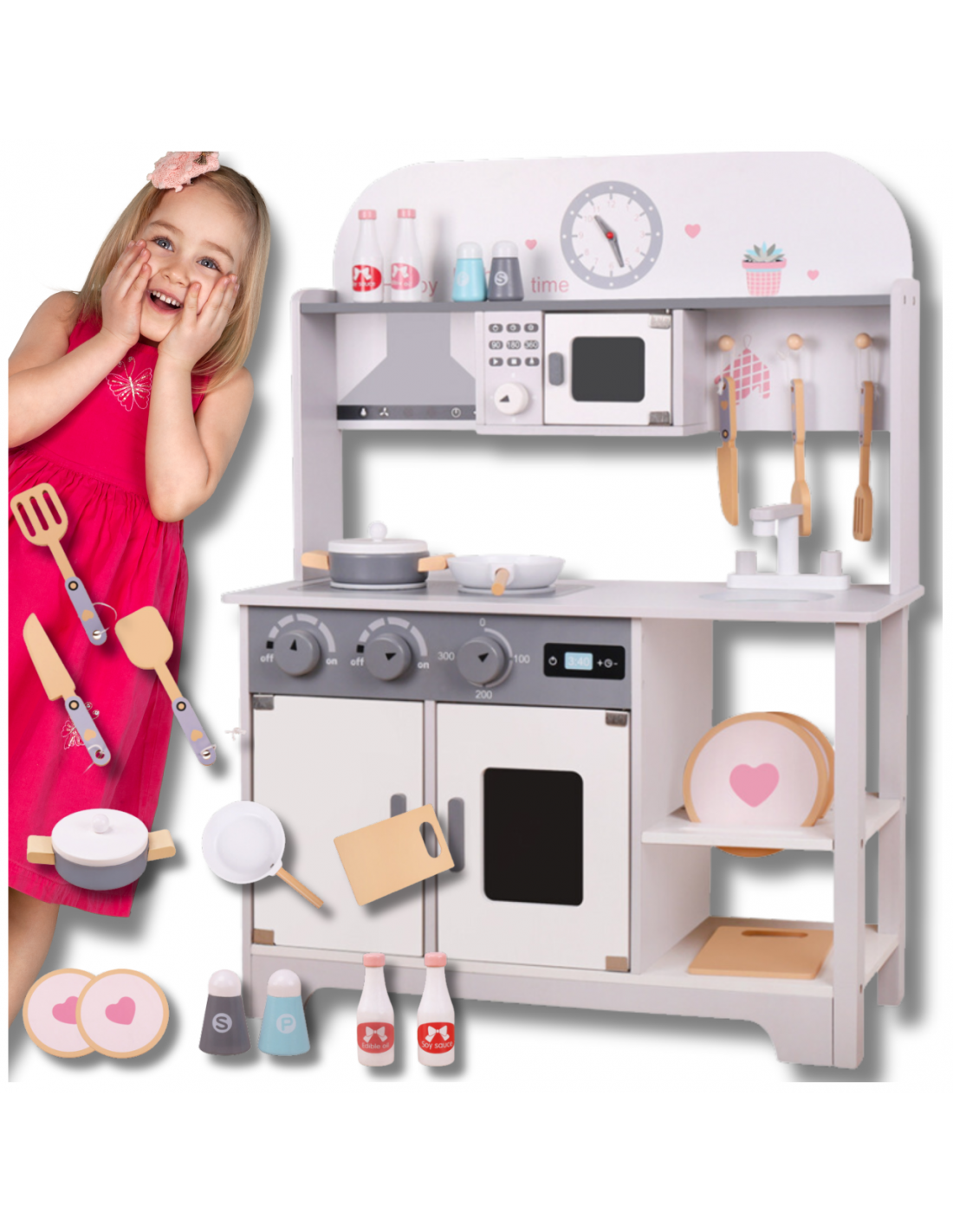 - Ekologiczne i bezpieczne materiały – Kuchnia wykonana z wysokiej jakości drewna, wolna od toksyn, przyjazna dla środowiska i gwarantująca bezpieczeństwo podczas zabawy.