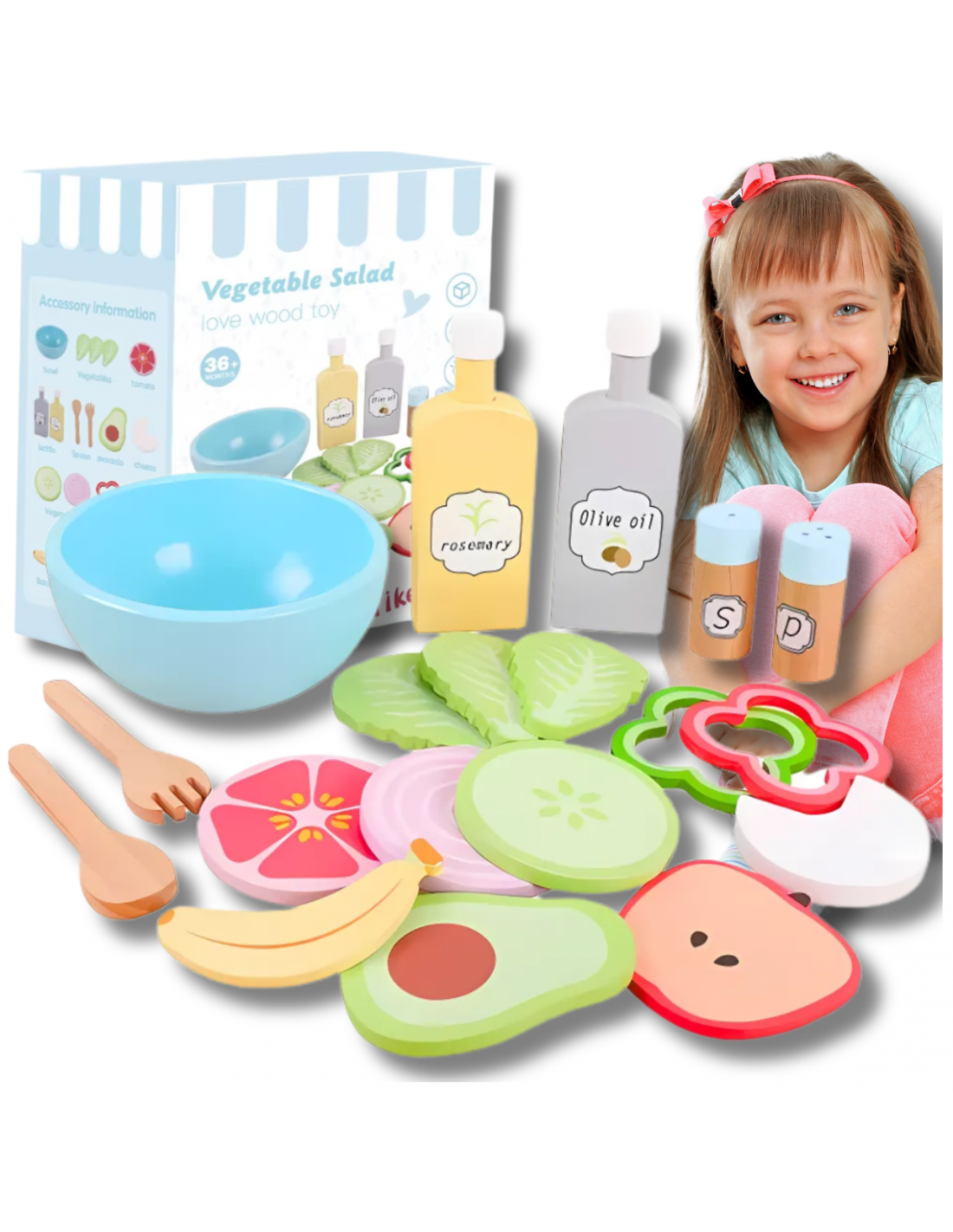 ☘️Odkryj wspaniały drewniany zestaw warzyw dla dzieci, który łączy zabawę z nauką o zdrowym odżywianiu! Zestaw zawiera różnorodne owoce, sztućce oraz dodatki, dzięki czemu Twoje dziecko może tworzyć własne kolorowe sałatki owocowe, ucząc się jednocześnie zasad zdrowego stylu życia. To idealna zabawka, która wspiera kreatywność, rozwija zręczność i wprowadza malucha w świat kulinarnych eksperymentów.