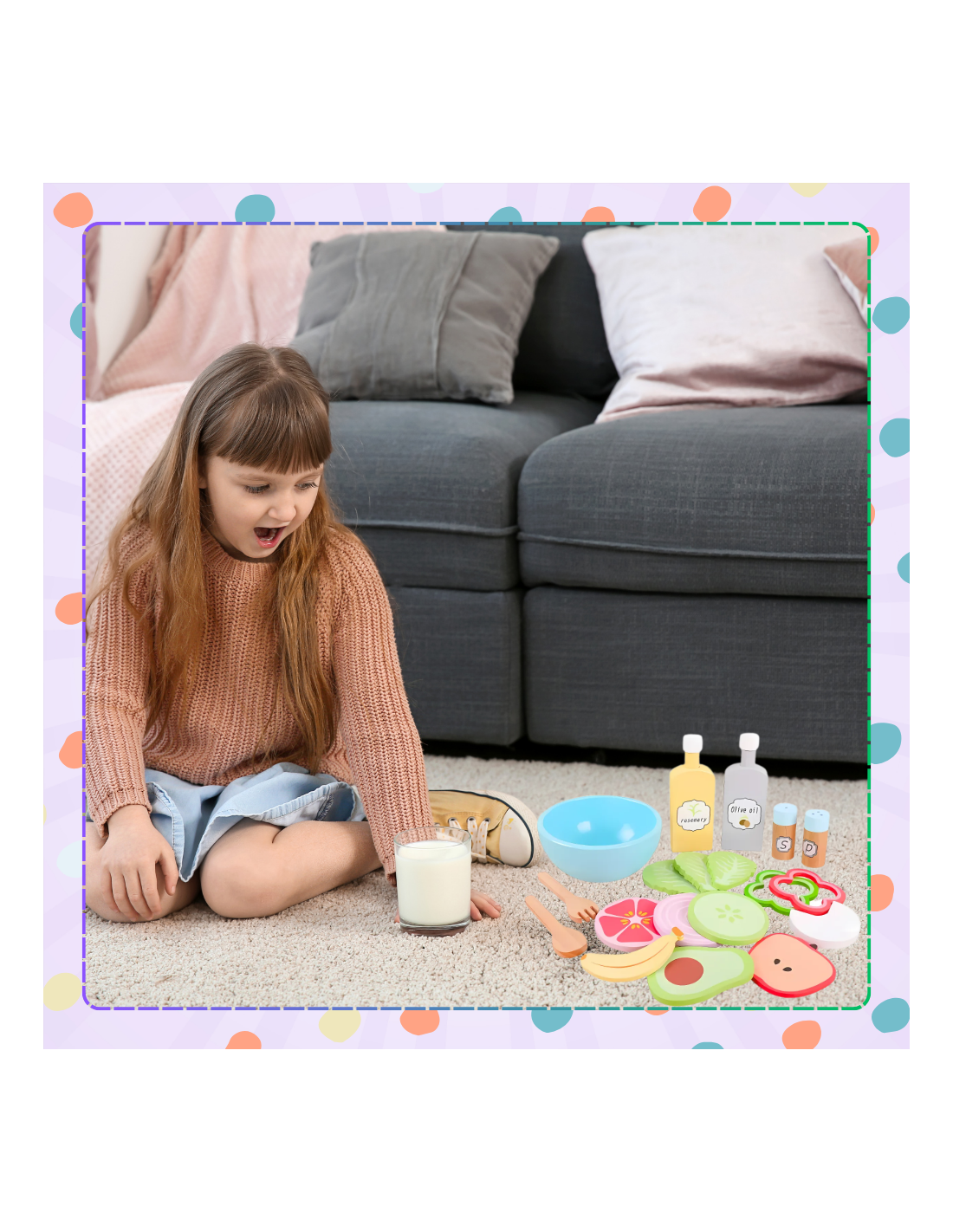 ✔️Rozwój motoryki i zręczności – Dzieci rozwijają koordynację ręka-oko oraz precyzję ruchów, używając sztućców i serwując owoce, co wspiera rozwój manualny.