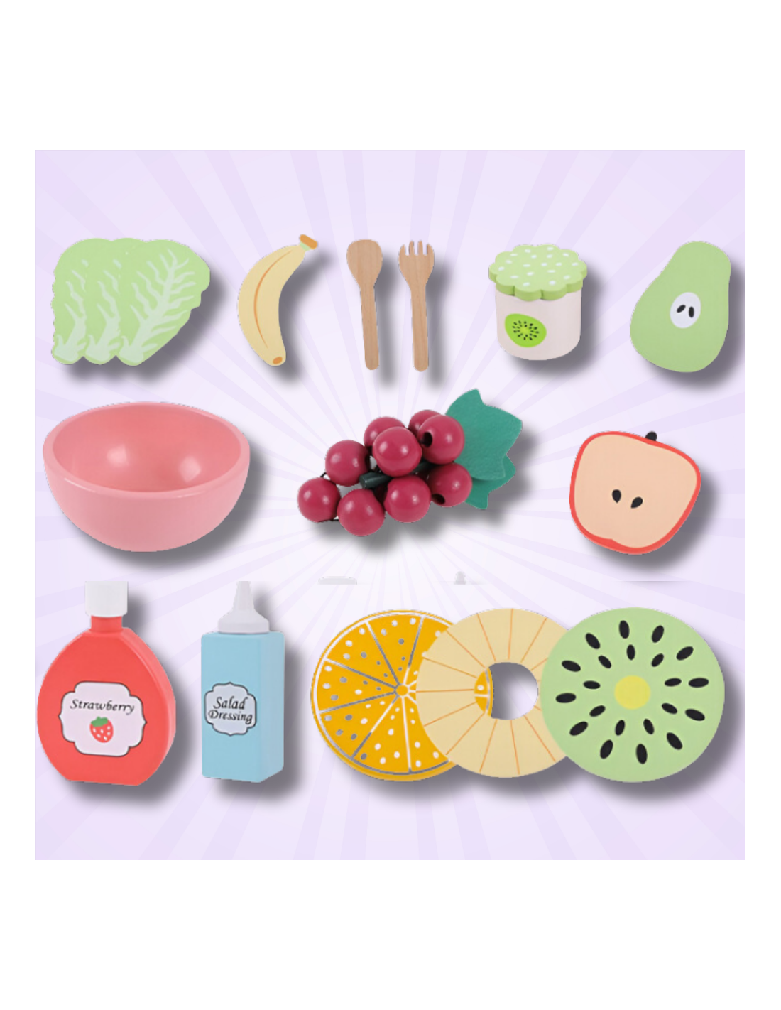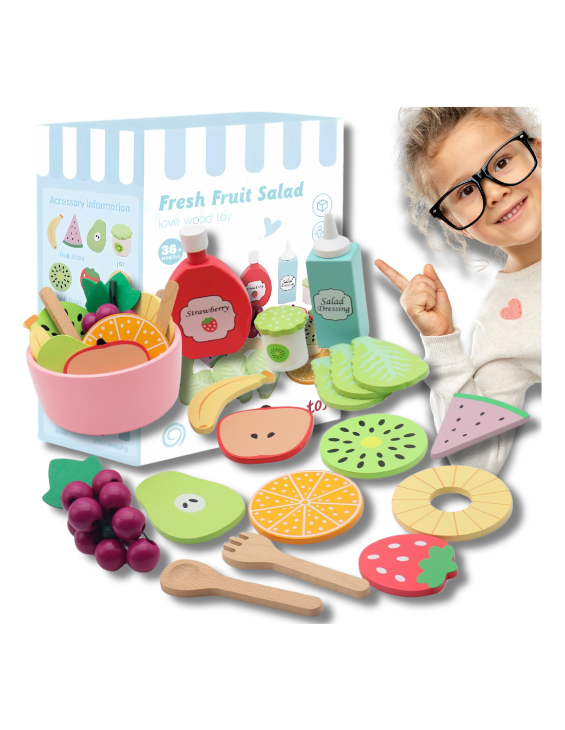 ☘️Odkryj wspaniały drewniany zestaw owoców dla dzieci, który łączy zabawę z nauką o zdrowym odżywianiu! Zestaw zawiera różnorodne owoce, sztućce oraz dodatki, dzięki czemu Twoje dziecko może tworzyć własne kolorowe sałatki owocowe, ucząc się jednocześnie zasad zdrowego stylu życia. To idealna zabawka, która wspiera kreatywność, rozwija zręczność i wprowadza malucha w świat kulinarnych eksperymentów.
