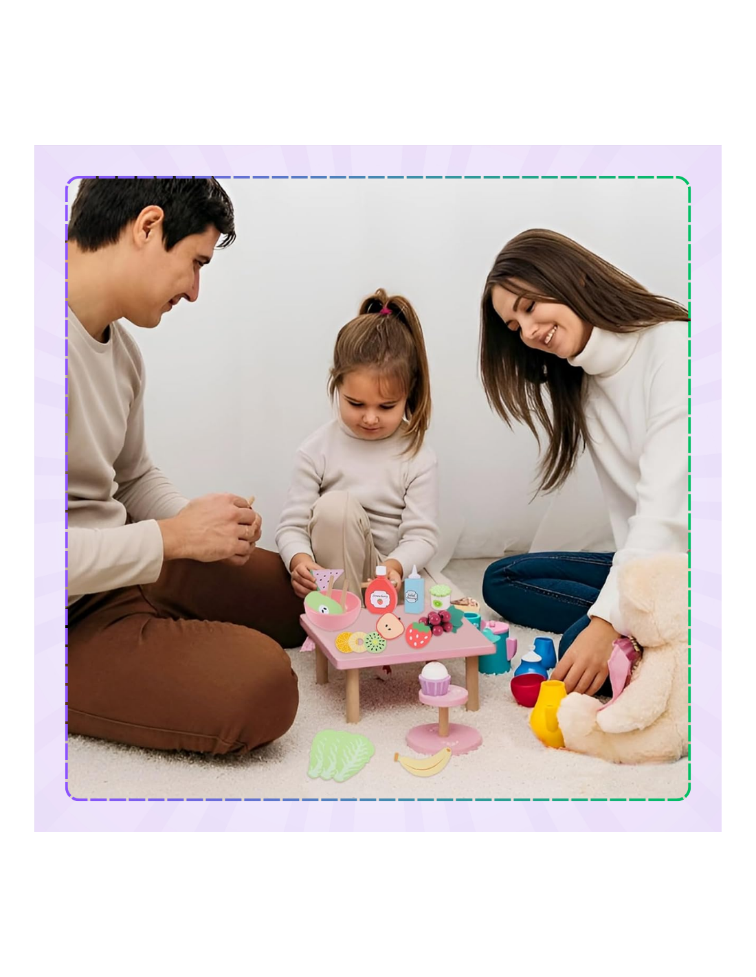 ✔️Rozwój motoryki i zręczności – Dzieci rozwijają koordynację ręka-oko oraz precyzję ruchów, używając sztućców i serwując owoce, co wspiera rozwój manualny.