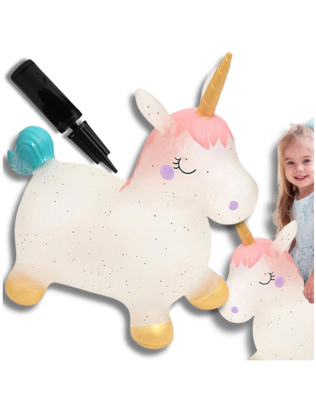 ⭐SKOCZEK DLA DZIECI DO SKAKANIA GUMOWY Z POMPKĄ JEDNOROŻEC