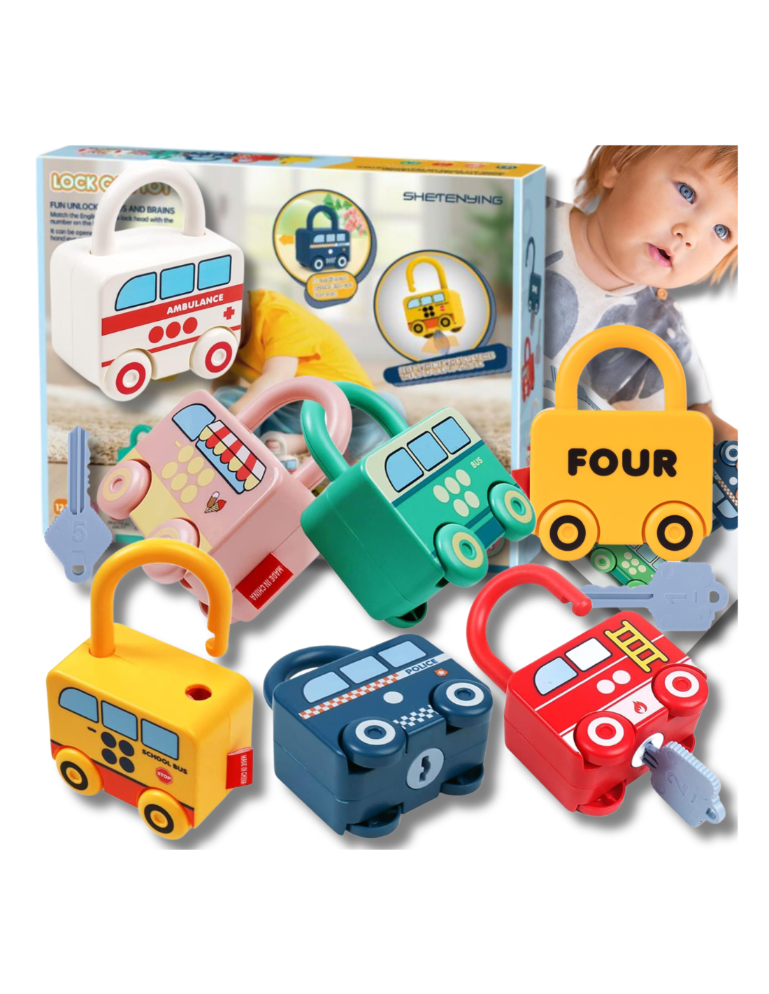 Zabawka Logiczna dla Dzieci – 6 Samochodów w Kształcie Kłódek z Kluczykiem!✨