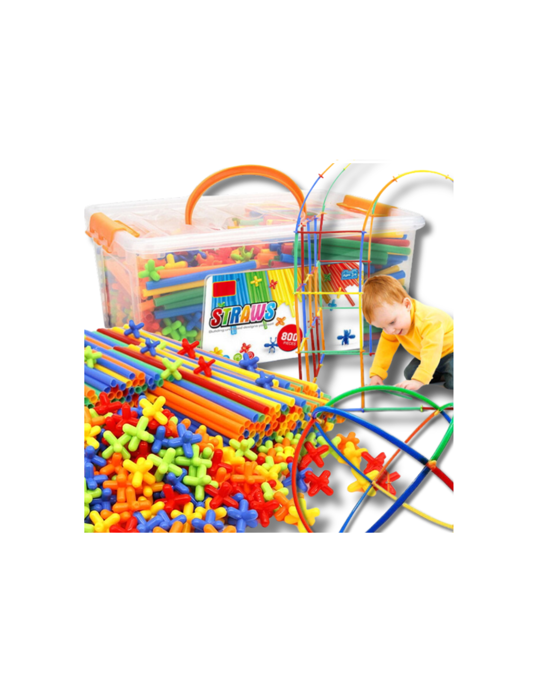 ZESTAW KLOCKÓW KONSTRUKCYJNYCH 800 ELEMENTÓW KREATYWNE SŁOMKI DLA DZIECI
