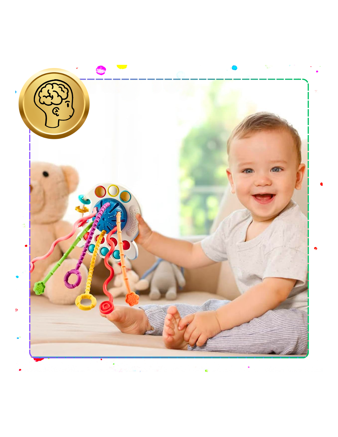 ⭐ZABAWKA DENSORYCZNA DLA NIEMOWLAKA 4 w 1 OŚMIORNICA ROZWÓJ ZMYSŁÓW DZIECKA