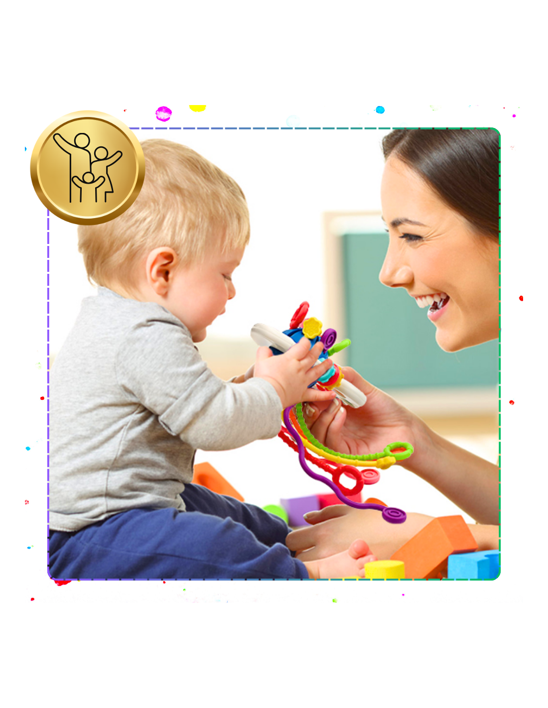 Różnorodność tekstur, kształtów i dźwięków stymuluje zmysł dotyku, wzroku i słuchu, pomagając dziecku odkrywać świat.