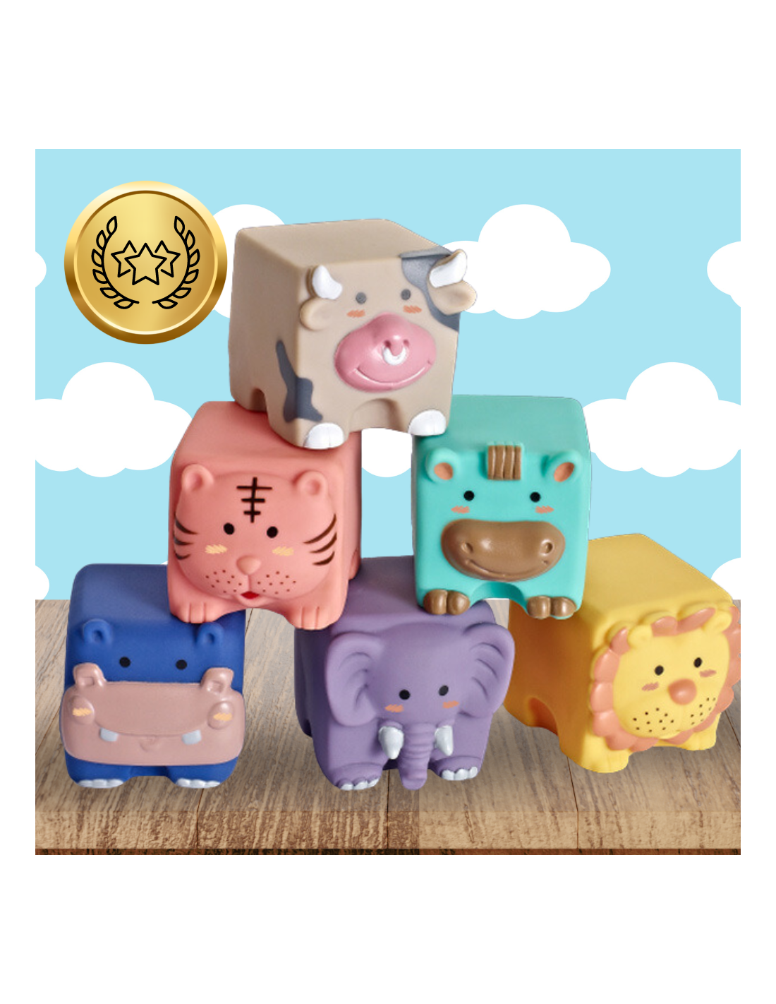 - 6 szt klocków zwierząt (wymiar klocka ok. 5,5 cm x 5,5 cm)