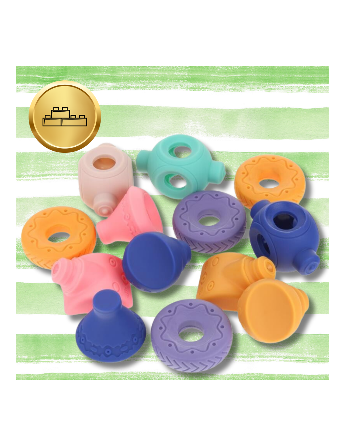Klocki wykonane są z wysokiej jakości, nietoksycznego silikonu, co sprawia, że są bezpieczne dla dzieci. Ich miękka struktura minimalizuje ryzyko urazów, co czyni je idealnymi do zabawy.