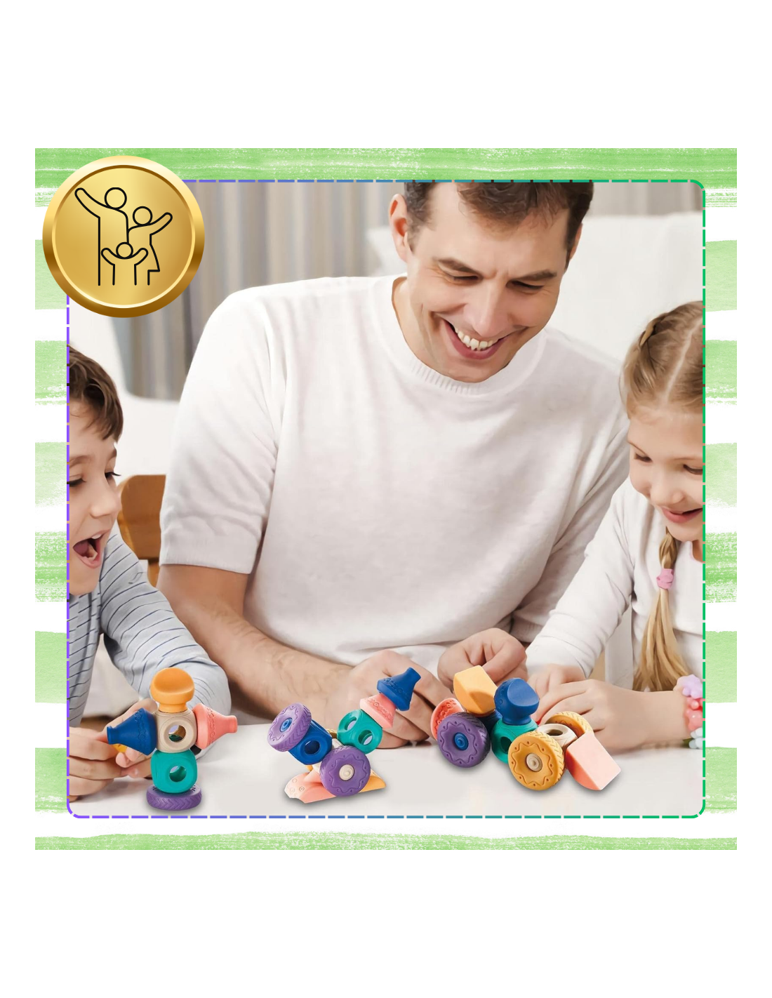 klocki sensoryczne świetnie sprawdzą się podczas zabaw z rówieśnikami, co rozwija umiejętności społeczne i uczy współpracy.